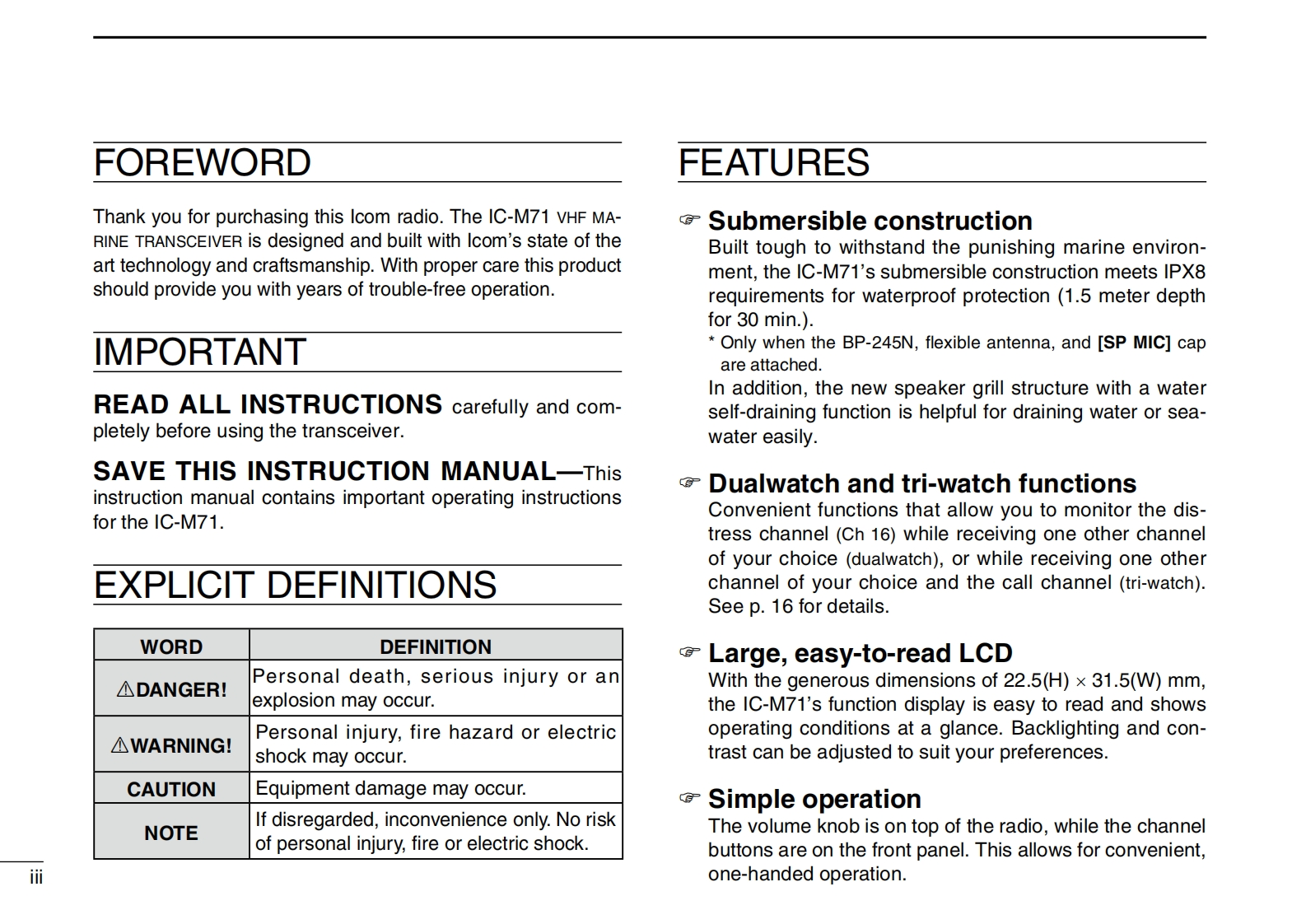 icom_icm71_使用说明书手册找手册网31天前发布关注私信2.89MB40页043icom_icm71_使用说明书手册此内容为付费资源,请付费后查看¥19¥21黄金会员免费钻石会员免费登录购买付费资源 第1页 / 共40页 第2页 / 共40页 第3页 / 共40页 第4页 / 共40页 第5页 / 共40页 第6页 / 共40页 第7页 / 共40页 第8页 / 共40页 第9页 / 共40页 第10页 / 共40页 试读已结束,还剩30页,您可下载完整版后进行离线阅读 THE END艾可慕 文本预览 COMINSTRUCTION MANUALVHF MARINE TRANSCEIVERIC-MZCOMI汇-M71WATERPROOFDIALTAGDUALSCANLOCK16H/LVHF MARINE TRANSCEWVERIcom Inc. 查看更多 收起部分 喜欢就支持一下吧收藏