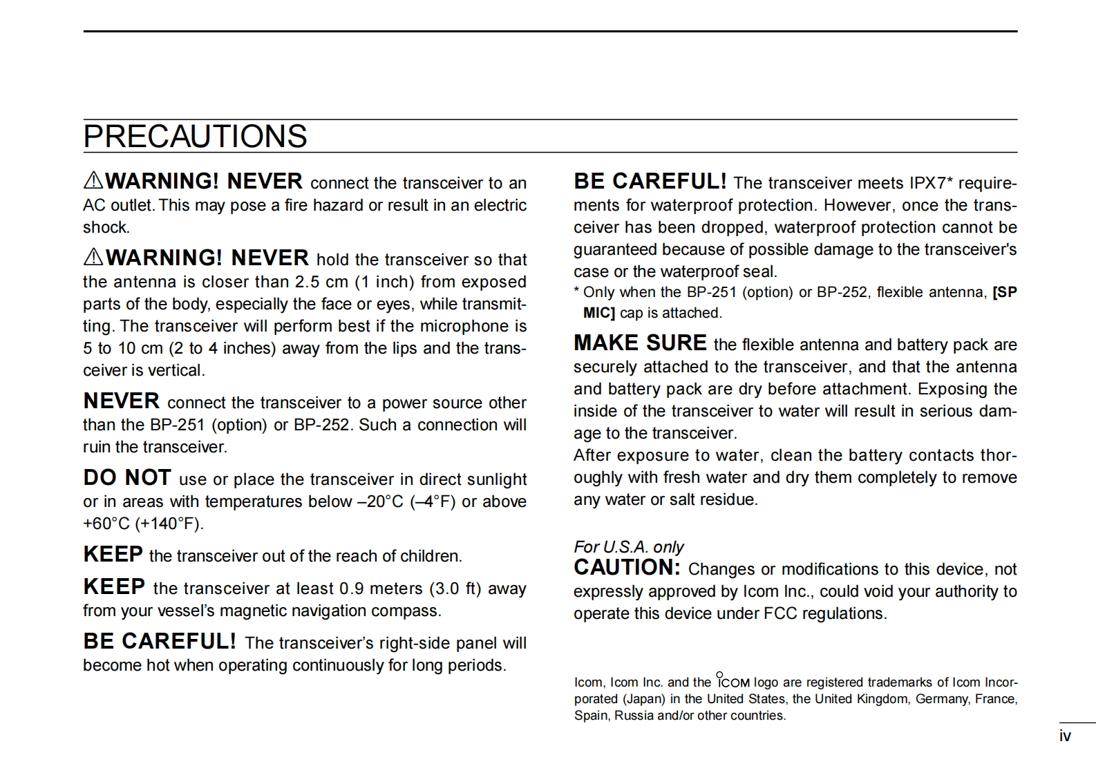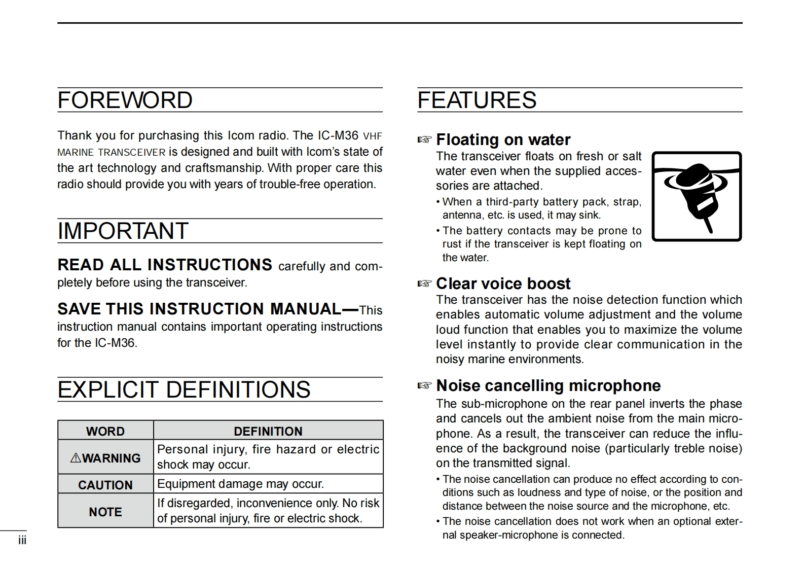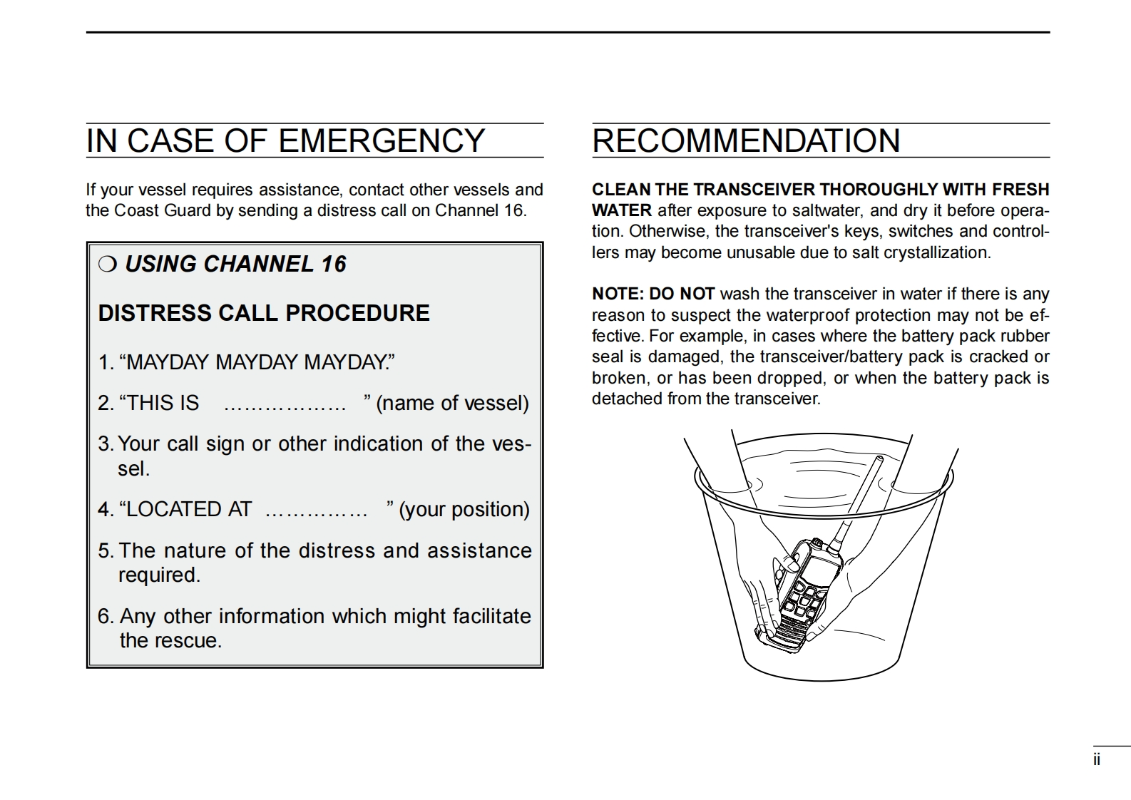 icom_icm36_使用说明书手册找手册网31天前发布关注私信1.75MB36页022icom_icm36_使用说明书手册此内容为付费资源,请付费后查看¥19¥21黄金会员免费钻石会员免费登录购买付费资源 第1页 / 共36页 第2页 / 共36页 第3页 / 共36页 第4页 / 共36页 第5页 / 共36页 第6页 / 共36页 第7页 / 共36页 第8页 / 共36页 第9页 / 共36页 第10页 / 共36页 试读已结束,还剩26页,您可下载完整版后进行离线阅读 THE END艾可慕 文本预览 INSTRUCTION MANUALVHF MARINE TRANSCEIVERIC-M36COMThis device complies with Part 15 of the FCCRules.Operation is subject to the condition thatthis device does not cause harmful interference.CLEAR VOICE BOOSTIcom Inc. 查看更多 收起部分 喜欢就支持一下吧收藏