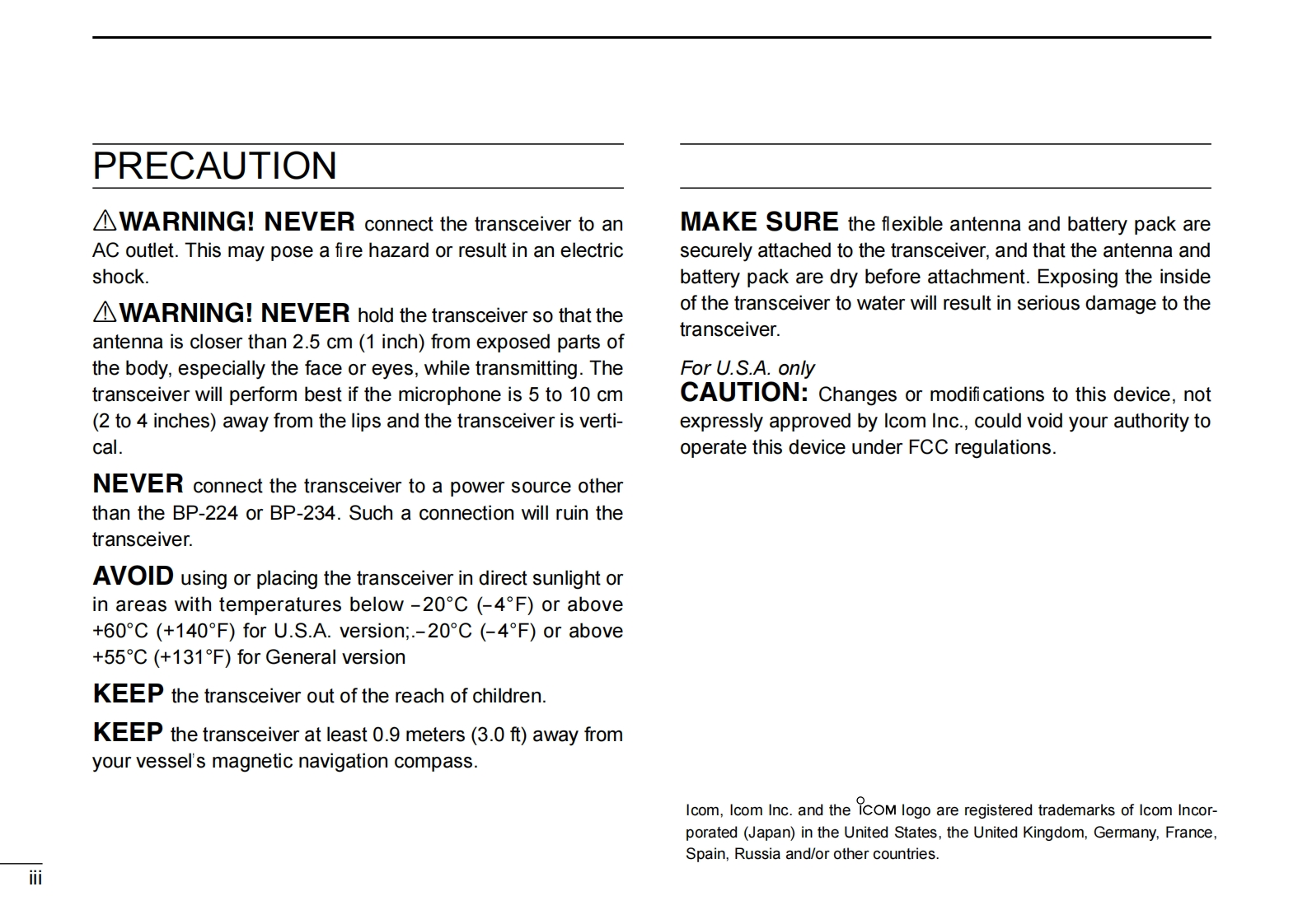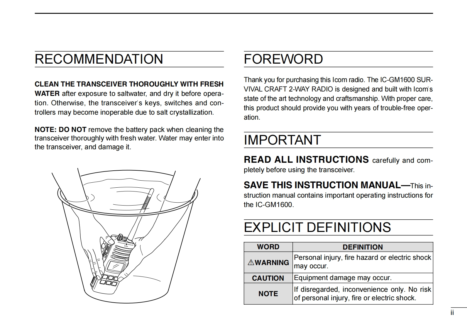 COMINSTRUCTION MANUALSURVIVAL CRAFT 2-WAY RADIOIC-GM1600COMThis device complies with Part 15 of the FCC Rules.Operation issubject to the condition that this device does not cause harmful inter-ference.CALLCH16Hi/LoGMDSSIcom Inc.g668'