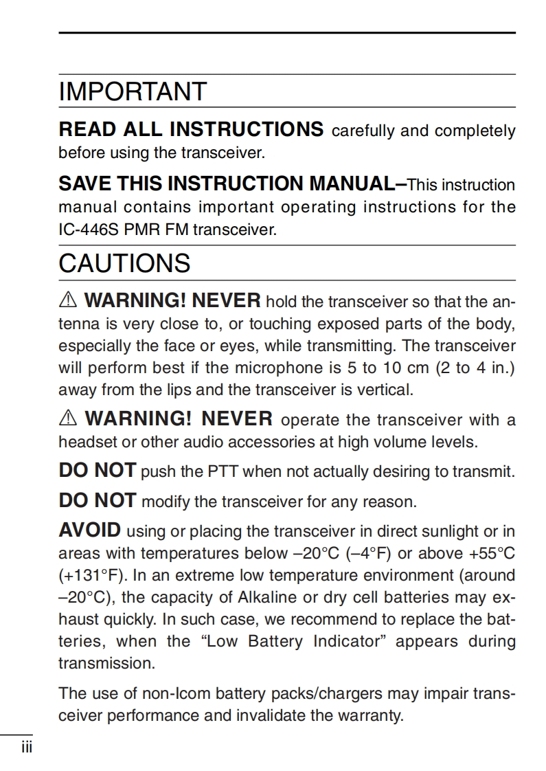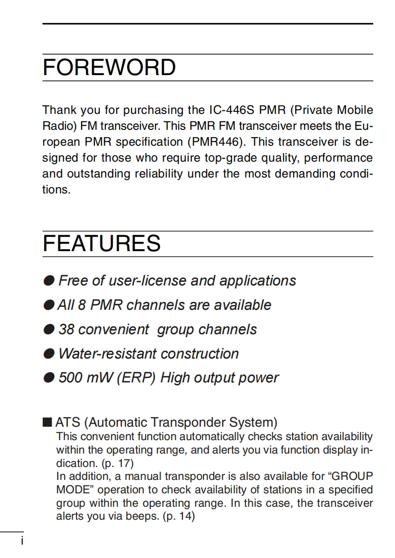 icom_ic446s_使用说明书手册找手册网31天前发布关注私信0.70MB32页021icom_ic446s_使用说明书手册此内容为付费资源,请付费后查看¥19¥21黄金会员免费钻石会员免费登录购买付费资源 第1页 / 共32页 第2页 / 共32页 第3页 / 共32页 第4页 / 共32页 第5页 / 共32页 第6页 / 共32页 第7页 / 共32页 第8页 / 共32页 第9页 / 共32页 第10页 / 共32页 试读已结束,还剩22页,您可下载完整版后进行离线阅读 THE END艾可慕 文本预览 TCOMINSTRUCTION MANUALPMR446 FM TRANSCEIVERIC-446SIcom Inc. 查看更多 收起部分 喜欢就支持一下吧收藏