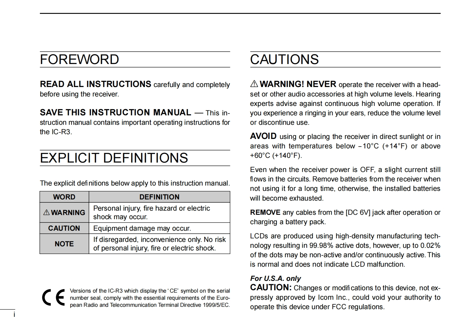 icomINSTRUCTION MANUALCOMMUNICATIONS RECEIVERC-R350This device complies with Part 15 of the FCC rules.Operation is sub-35ject to the following two conditions:(1)This device may not causeharmful interference,and (2)this device must accept any interferencereceived,including interference that may cause undesired operation.Icom Inc.
