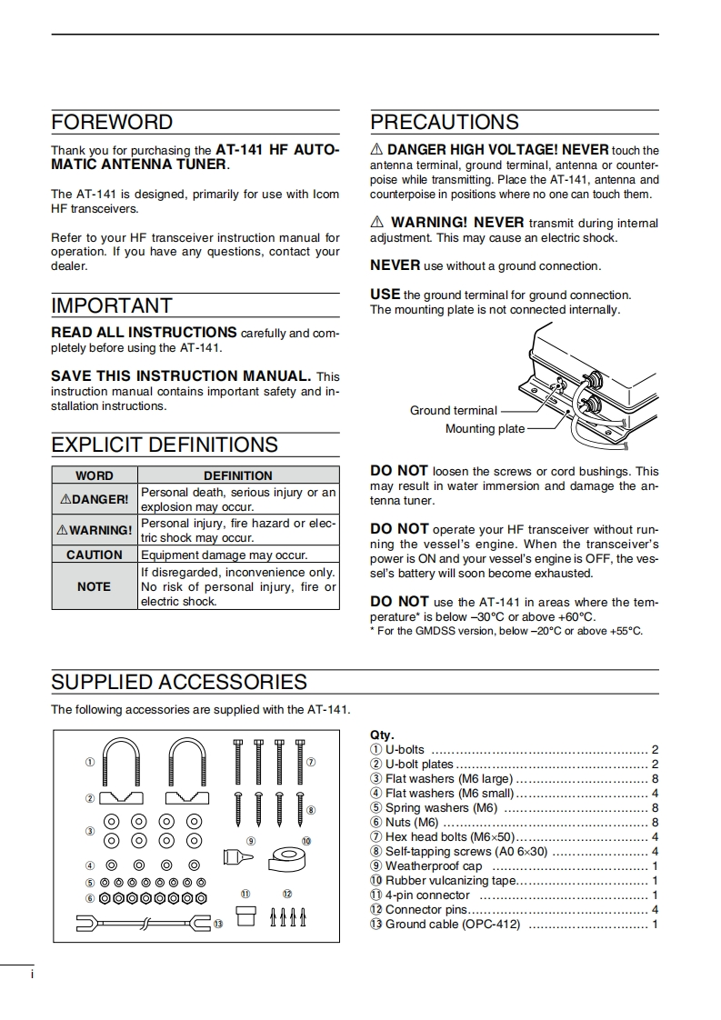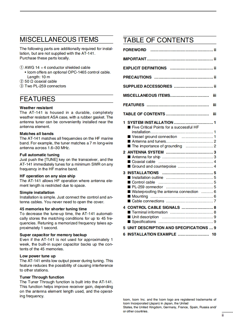 Icom_AT-141_操作说明书手册找手册网32天前发布关注私信0.76MB16页025Icom_AT-141_操作说明书手册此内容为付费资源,请付费后查看¥19¥21黄金会员免费钻石会员免费登录购买付费资源 第1页 / 共16页 第2页 / 共16页 第3页 / 共16页 第4页 / 共16页 第5页 / 共16页 第6页 / 共16页 第7页 / 共16页 第8页 / 共16页 第9页 / 共16页 第10页 / 共16页 试读已结束,还剩6页,您可下载完整版后进行离线阅读 THE END艾可慕 文本预览 iCOMINSTRUCTION MANUALHF AUTOMATICANTENNA TUNERAT-141乙OMIcom Inc. 查看更多 收起部分 喜欢就支持一下吧收藏