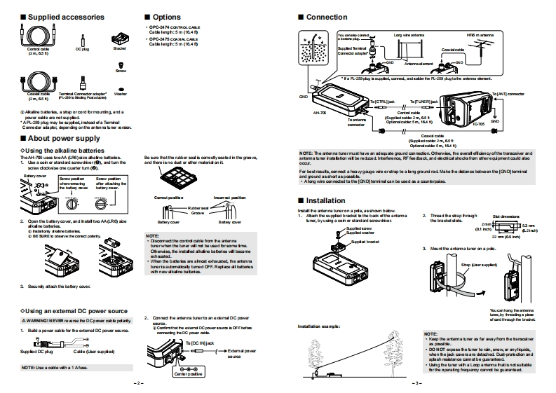 ■Operation■SpecificationsL Tum ON he rarodvr.,Fraquency rangcL8w54在ICOMINSTRUCTIONS2Thank you for choasing this lcam praductTouch atth batam af he serein.Modmum rpupowr10WAUTOMATIC ANTENNA TUNER良EAD ALLINST限UC TONS cinfuly and c的n电y生auch [TUNE”Input impedanoc00AH-705bong地pod,u审powir neqguinad4 T0W,Aufamaletuning tima时Apprexmdly2 to 3 scand④de tring.a se tone is heard,and "TN dinia争bouching [TUNER到umhe7西OWaO年ypuaed Afrtunng.UEBd由yd■Important■Precautionsthwu10 Vfer twe AA(LR的wAVE THE线INsi限CTONS一Thee irtrudian点DWG2我MG时OLTAGEI NEVE我o动n电时自aWOC住1%约过tn impatant年rting itrudtion brthe件70aan国aa女datrarameing ar uning T恤oau时e里Baand=dho支a白um.brexml OC power,Guwt由deyLidkd thin 1 mA■Featuresthn 300 mA54'dust pre过dion and sdl oh·Cyh相故o过vw线8过超dcae andlecticl sho或ahum.DANGEMGHa.TAG电NE性eu中nVSWRe1:20ae越,地u cin ud the AH70的hAAL的sadAW吸NGIN速t我ae heanknnatuner drig a lg时ngdemint whh buning artransmiing Th线出easrdde4sho域aun.wne球约,eH0 5 provides nal地a mitching from La MHz B4H上sing a long wire damirt么NUAR NINGI NEVE我ta动he arterrua tu■th wet huandNOTE:剪的的0州0色mT50s41001B0的过s■Disposal么RNNGINEVER甲y ACpower ta和CCId可kngth and camclat TheAH-camattun a wie(rouclas natndudedha arternatuner.This coudcane a te ar damaga ha tunr.h蓝isa以ang a an a muli时a df that freginc.,h8H-0 usi ltdhing rala的h妇woMs。由a甲o量年40g.58grThe crasdd-at whdd-tin symbd an yorWhad相)carumticn.The lthng ralrya hermdwmimaina he aparating st线b hey may过hdddaric p0dd线b幽nd and acoumu量a么NAR NNGI NEVE我erae he DC po■cthd山yh8n华生短a链ogr甲过o the tuniet星heoae色h出na m链b地tanetSVR sigilertly changis duing apartion.nutune hemennLla自edpc轴hed pradudts脑mard muni中alhe irade of he antanna tnes or makeinconct cortact uithe地▣B0地甘轴naoo边边a te he Liain vor rwc女n.电o出cane andledic o攻or darrags th tnT里ourIc70的ia b L0arl■FCC information■About CE and DOCWUTON:DO NOT raramt ar unewthaut an arterraThe Tiune Mimary fundtian se the lthing nalylrth色ra Clod B dgt地o线ursuart part 1:5H由¥lcamine dedines thie the wrsiarafthe FCC风akok Thise irit ane dedig nad to pravid如H-which have he C"symbdl an thee地rti通ai.h6u中wtg道线4sGdhw民过eE年中mt自rc起,0145日U,Hs may cane an中ry and'ar damaga he tune.rarolwir.Upditing he imware ad nw undicnsand cin rad由影rada mequincy anirgy and着n过irball edand he natridion dl he ue af oirtan harardan substnodThed过de包U由radan df contmity B avid地道If he tuner becamedaty or drty wip网t位eaww.icem年n上anh千#a号超8se速n8h谨irtarfininc线d1过oceur in ae与hgh影rd由a业建雪arterrua tuner avay fromheary rain and neverSee he trancelver's intucton manual br detal.d过wr时y burring the equpmirt of and an,the usr b■Explicit definitionsnow00■DOF IITION点DANGCRIO0w灯Tpl aoarku通hm南u tner n exomaively duatyaplouin may ocar.n平n点NC◇Battery cautionsCAUTION:Chingo ar madficion o this devol,natCAMON0年车Tt士Tmy0,么DWG2我NE我in寸tau知dbatery ouls ainoa heNOTEn意ln过be ued白ra女g包d of ime.Othervbe,th口4dw女addm湘uTha devol campl with part af thi FCC RukeCp国r性u单dto he blawing we candtian室(销hslca ia not maporle for the deatuction damage ordevioa maynd caus hamul rtarferanol and 2)thisfomano of any com or non-com车t