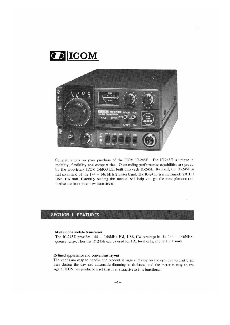 IC245E-instruction-manual操作说明书手册找手册网31天前发布关注私信12.54MB30页028IC245E-instruction-manual操作说明书手册此内容为付费资源,请付费后查看¥19¥21黄金会员免费钻石会员免费登录购买付费资源 第1页 / 共30页 第2页 / 共30页 第3页 / 共30页 第4页 / 共30页 第5页 / 共30页 第6页 / 共30页 第7页 / 共30页 第8页 / 共30页 第9页 / 共30页 第10页 / 共30页 试读已结束,还剩20页,您可下载完整版后进行离线阅读 THE END艾可慕 文本预览 IC-245E2 METER FMSSB-CWDigital SynthesizedTransceiverINSTRUCTIONMANUALICOM 查看更多 收起部分 喜欢就支持一下吧收藏
