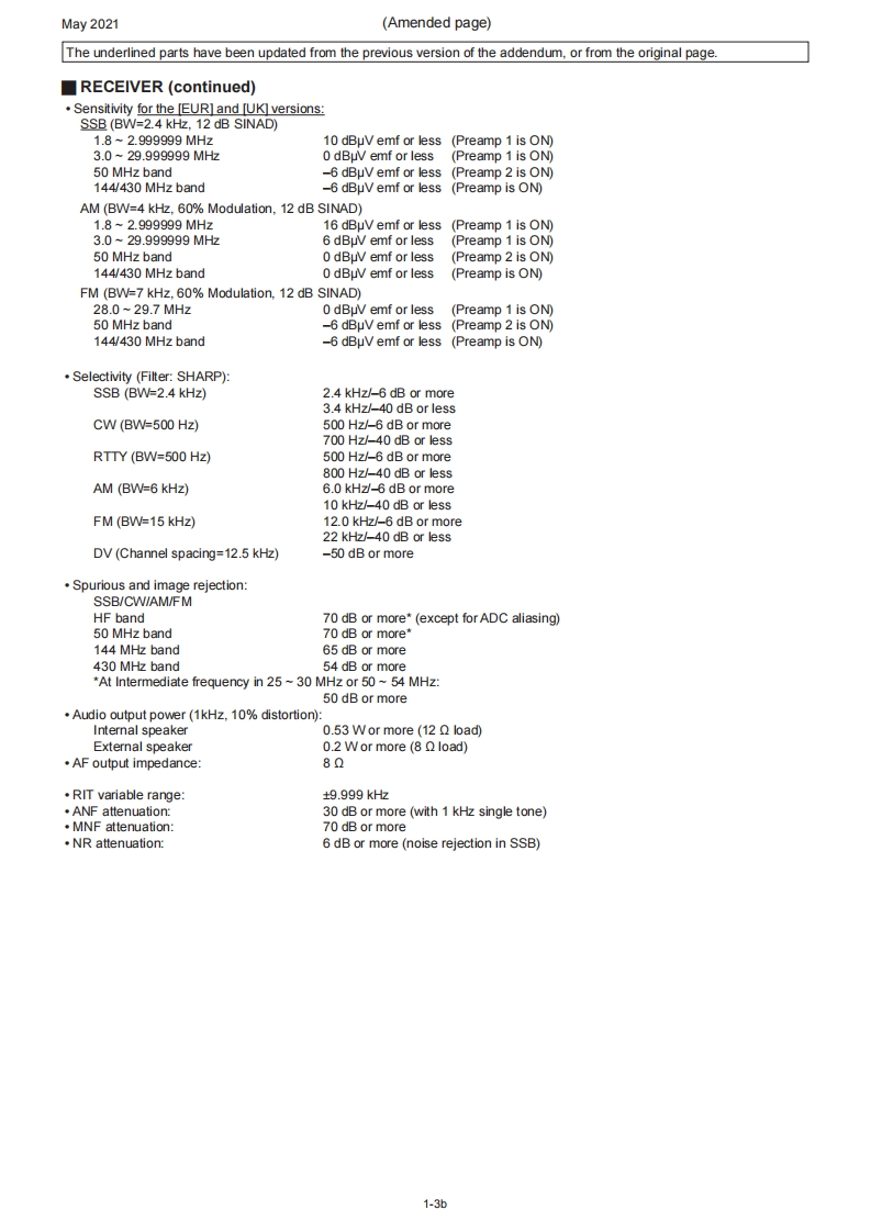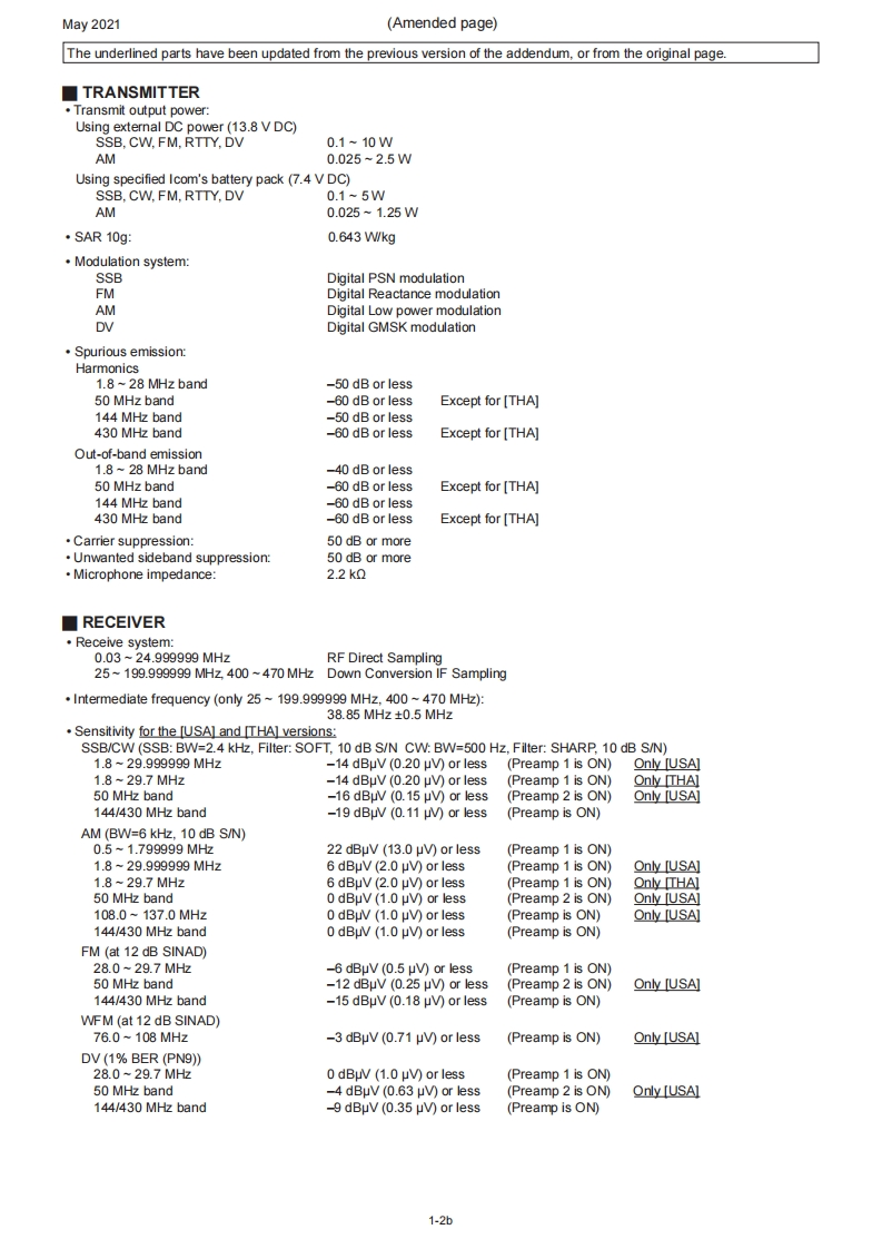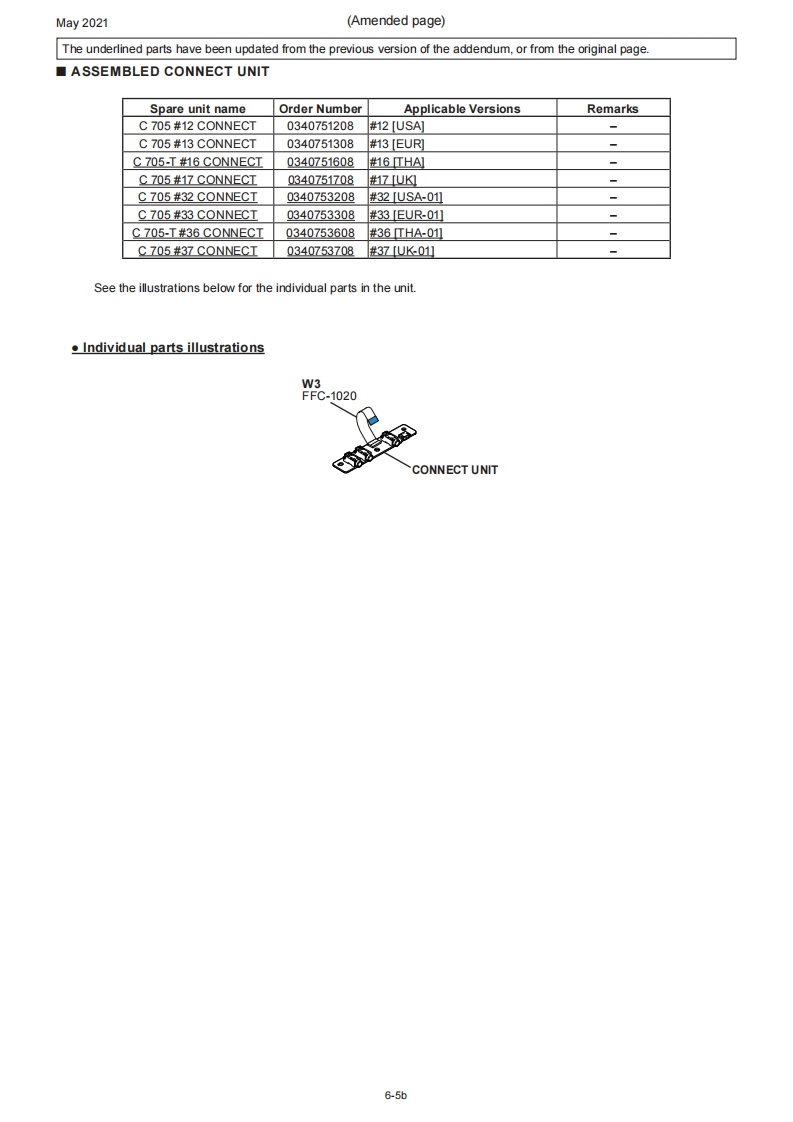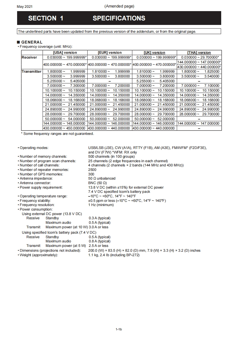 May 2021COMSERVICE MANUALADDENDUM1C-705/1C-705-TNOTE:Use these amended pages as one addendum set.Do not mix them up with the previous master pages.DefinitionsReplacement pageThe page to replace the original one.Addendum pageThe page to be added to the original set.Amended pageThe page to be added as change history.including corrections.Page number informationThe number of revisions can be easily understood by the addendum service manual's page number.The number of revisions (a,b,c..is added after the page number.CONTENTSSECTION 1SPECIFICATIONS.1-1b~1-4bSECTION 6SPARE UNITS...6-1b~6-9bSECTION 7MECHANICAL PARTS...7-1b-7-4bSECTION 8BOARD LAYOUT............................8-1b8-18bSECTION 9WIRING DIAGRAM9-1bSECTION 11SCHEMATIC DIAGRAM11-1b-11-26bSECTION 12RECOMMENDED SPARE PARTS..................12-1b-12-7bVERSION LISTModel5MHz435MHzAir bandFM radioVersionreceivereceiveNameNumber'VersionoperatioroperationRemarksfunctionfunction1C-70512USA1C-70513)EUR1C-705-T【16THA1C-705#1UK1C-705【32USA-011C-70533]EUR-011C-705-T3THA-011C-705【37UK-01"The first two digits of the serial number indicate its version number.Newly added version.