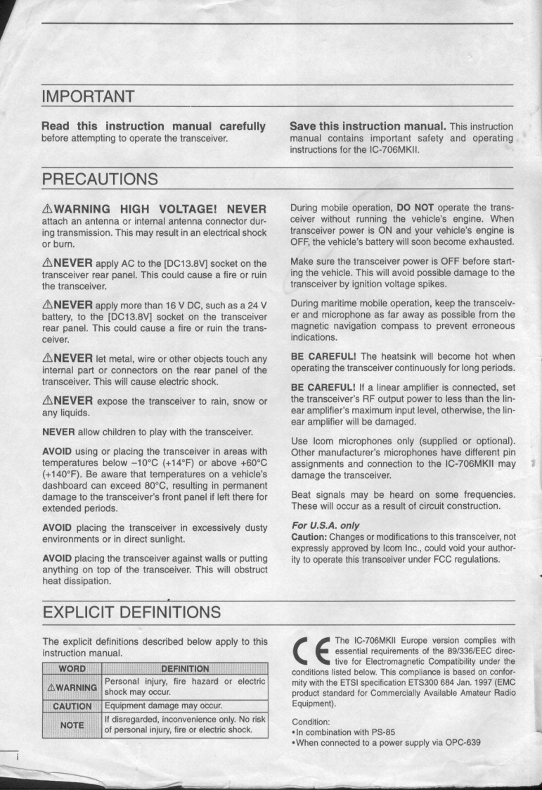 IC-706MKII操作说明书手册找手册网31天前发布关注私信14.60MB63页022IC-706MKII操作说明书手册此内容为付费资源,请付费后查看¥19¥21黄金会员免费钻石会员免费登录购买付费资源 第1页 / 共63页 第2页 / 共63页 第3页 / 共63页 第4页 / 共63页 第5页 / 共63页 第6页 / 共63页 第7页 / 共63页 第8页 / 共63页 第9页 / 共63页 第10页 / 共63页 试读已结束,还剩53页,您可下载完整版后进行离线阅读 THE END艾可慕 文本预览 iCOMINSTRUCTION MANUALHF/VHF TRANSCEIVERIC-706MKII%9570699Mi SPL A/B XFCThis device complies with Part 15 of the FCC rules.Operation is subect to the following two conditions:(1)This deviceIcom Inc. 查看更多 收起部分 喜欢就支持一下吧收藏