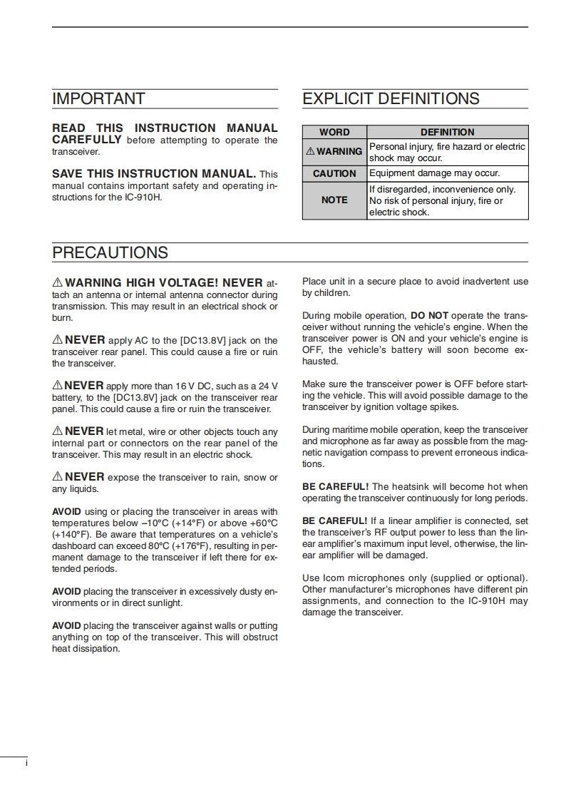 ic910h_操作说明书手册找手册网31天前发布关注私信3.37MB88页030ic910h_操作说明书手册此内容为付费资源,请付费后查看¥19¥21黄金会员免费钻石会员免费登录购买付费资源 第1页 / 共88页 第2页 / 共88页 第3页 / 共88页 第4页 / 共88页 第5页 / 共88页 第6页 / 共88页 第7页 / 共88页 第8页 / 共88页 第9页 / 共88页 第10页 / 共88页 试读已结束,还剩78页,您可下载完整版后进行离线阅读 THE END艾可慕 文本预览 icoMINSTRUCTION MANUALVHF/UHFALL MODE TRANSCEIVERIC-910H145.890.0iitirii4351009Icom Inc. 查看更多 收起部分 喜欢就支持一下吧收藏