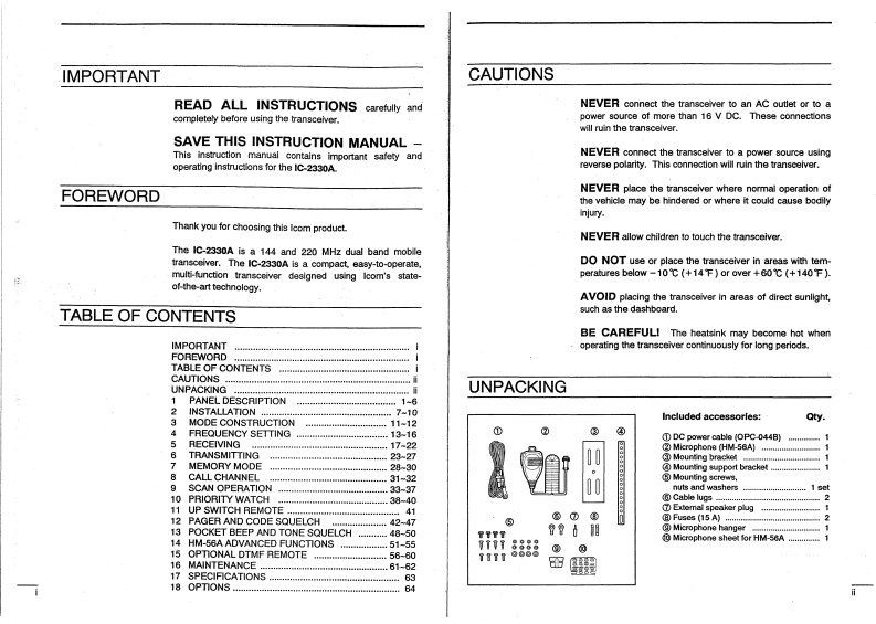 ic2330a_使用说明书手册找手册网31天前发布关注私信4.03MB34页046ic2330a_使用说明书手册此内容为付费资源,请付费后查看¥19¥21黄金会员免费钻石会员免费登录购买付费资源 第1页 / 共34页 第2页 / 共34页 第3页 / 共34页 第4页 / 共34页 第5页 / 共34页 第6页 / 共34页 第7页 / 共34页 第8页 / 共34页 第9页 / 共34页 第10页 / 共34页 试读已结束,还剩24页,您可下载完整版后进行离线阅读 THE END艾可慕 文本预览 Count on us!COMINSTRUCTION MANUALDUAL BANDFM TRANSCEIVERIC-2330AA52118.1U8Prirted in JapanIcom Inc.Cepyright1002 by licom Ine.6-0-16.Kamihigashi.Hirano-ku.Osaka 547,JapanIcom Inc. 查看更多 收起部分 喜欢就支持一下吧收藏