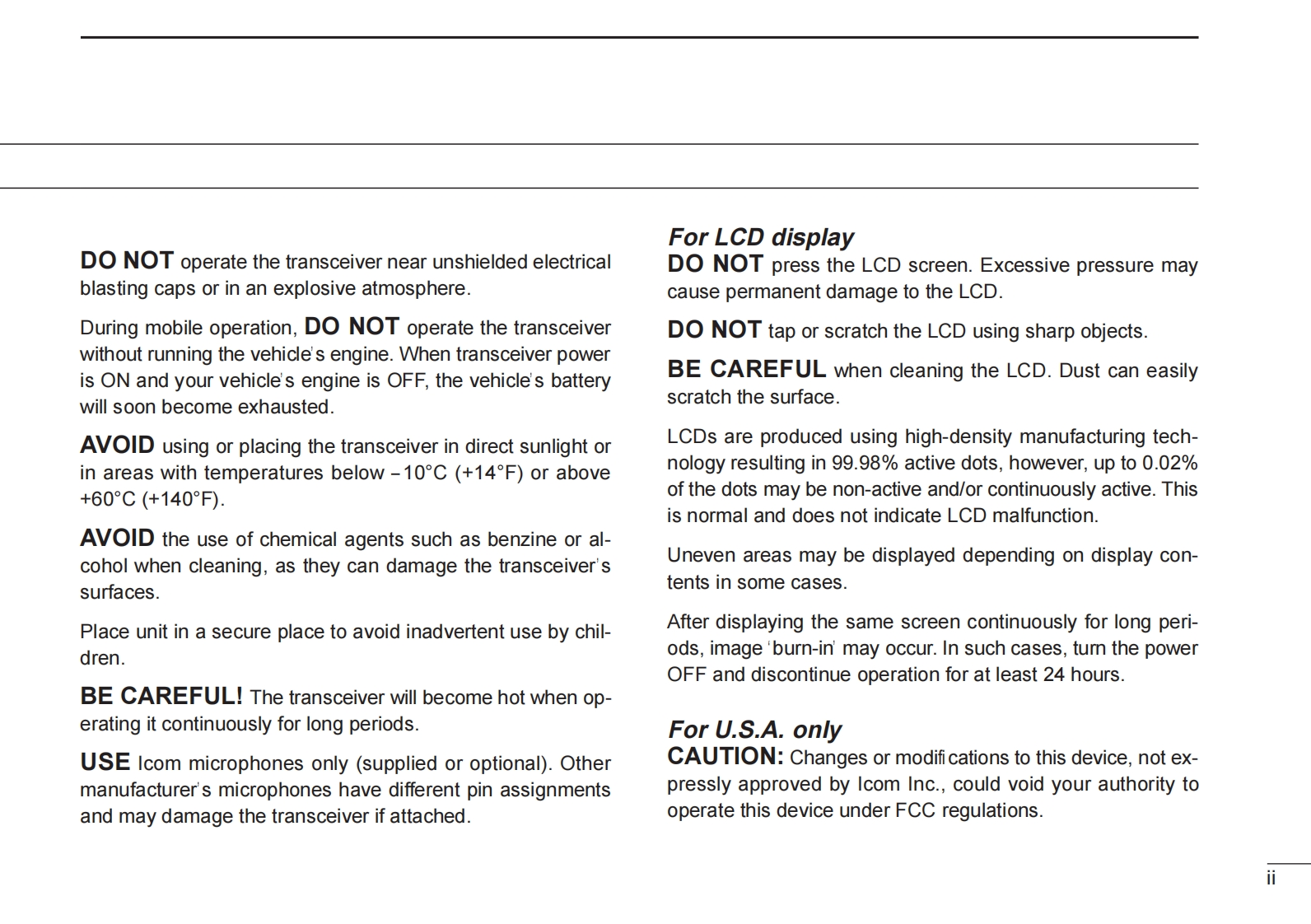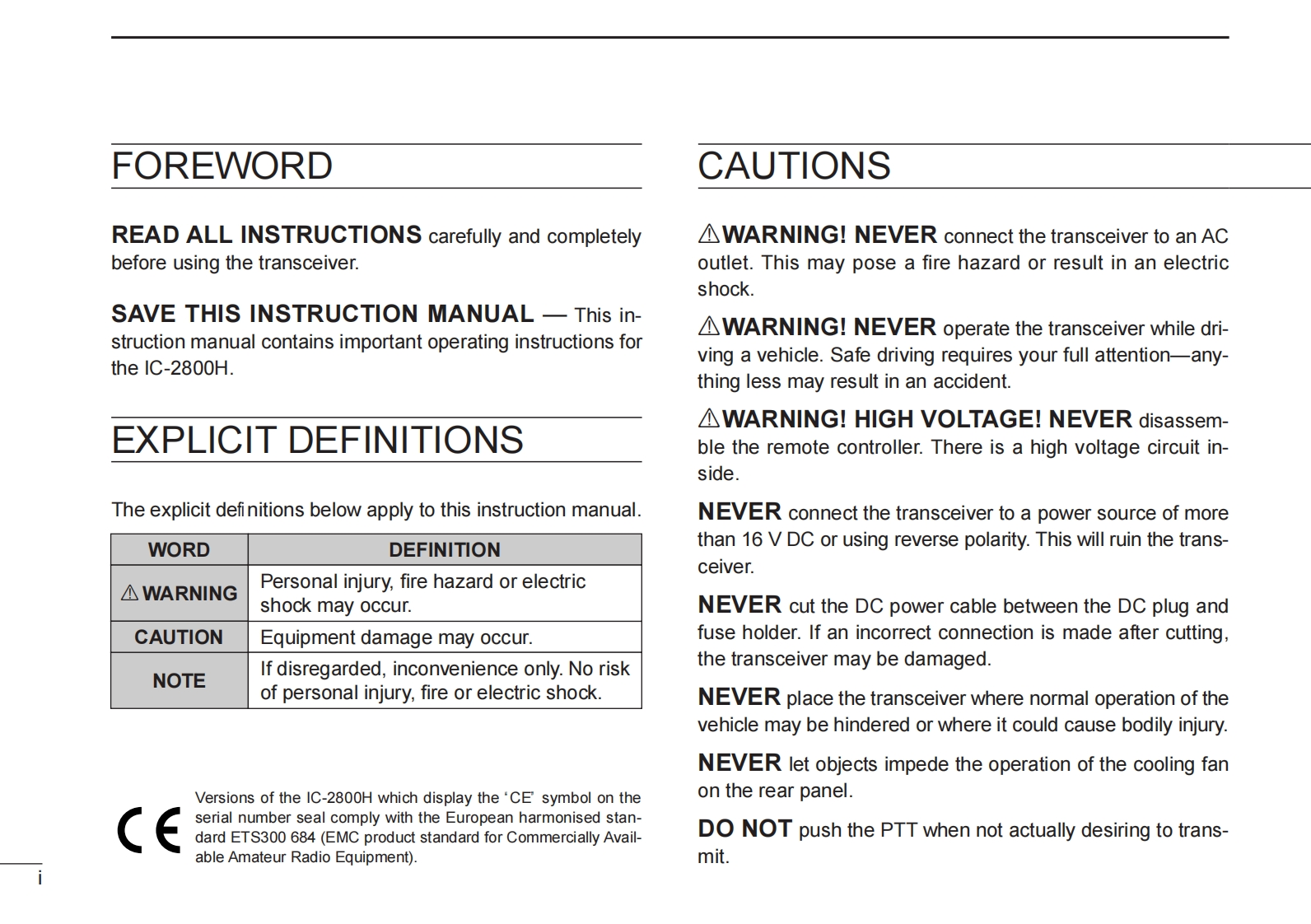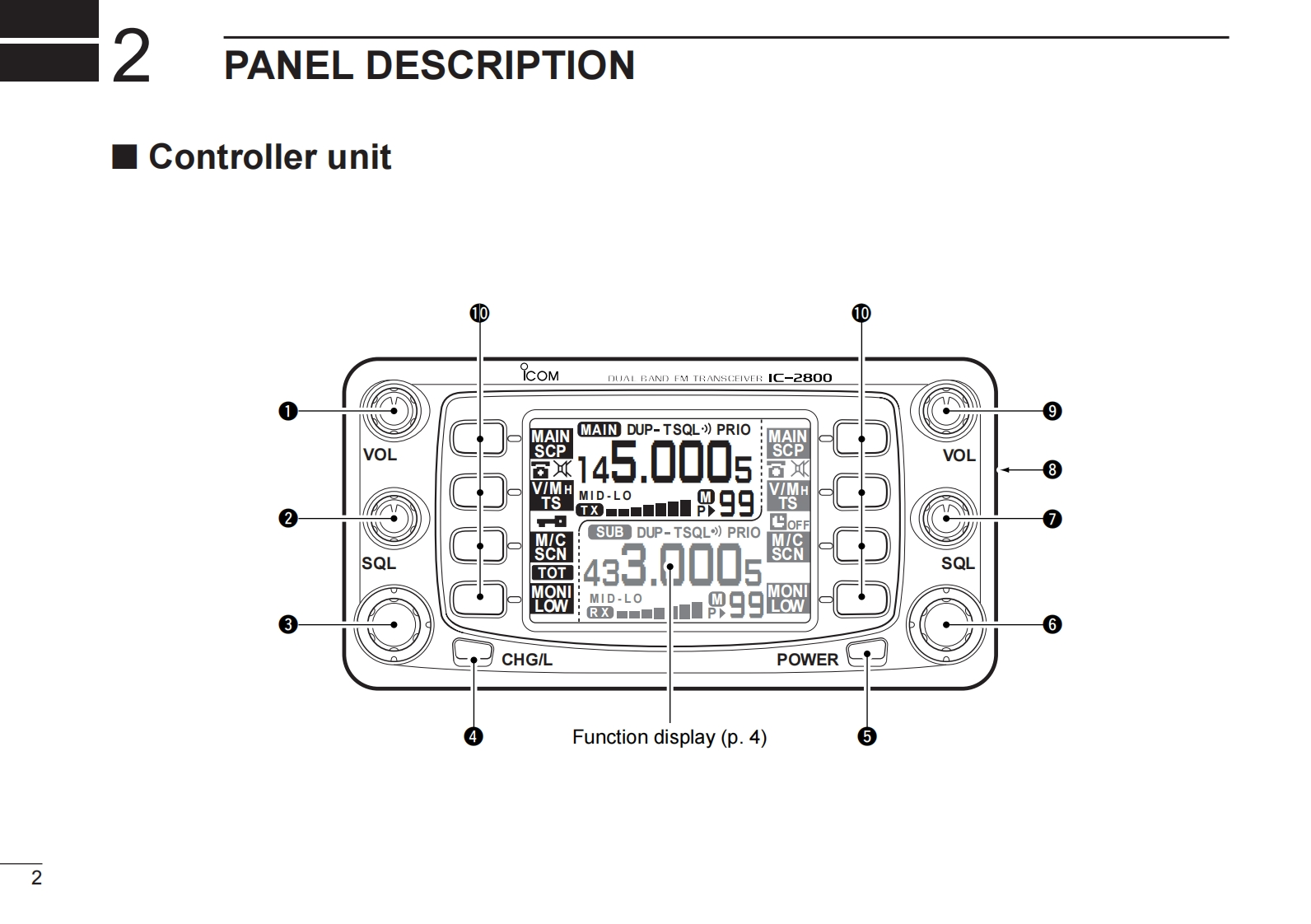 ICOMINSTRUCTION MANUALDUAL BAND FM TRANSCEIVERIC-2800HThis device complies with Part 15 of the FCC rules.Operation is sub-ject to the following two conditions:(1)This device may not causeharmful interference,and (2)this device must accept any interferencereceived,including interference that may cause undesired operation.Icom Inc.