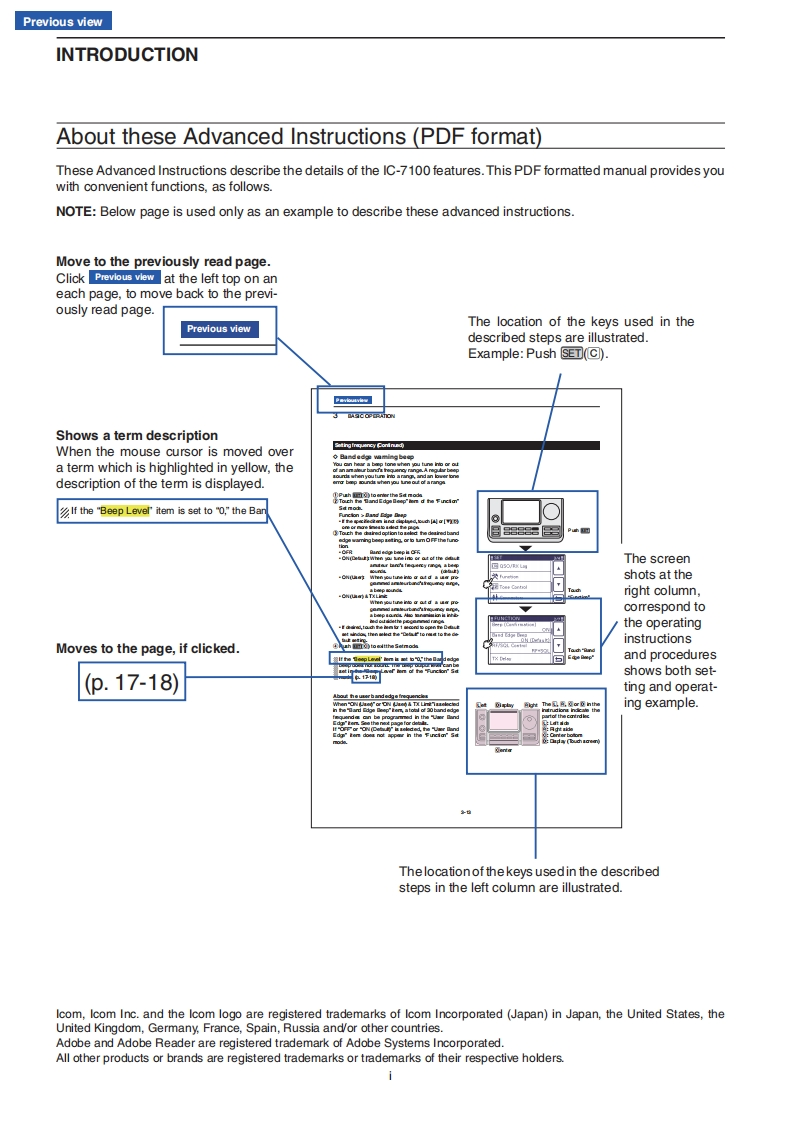 iCOMADVANCED INSTRUCTIONSINTRODUCTION1 PANEL DESCRIPTION2 INSTALLATION AND CONNECTIONS3 BASIC OPERATION4RECEIVE AND TRANSMITHF/VHF/UHF ALL MODE TRANSCEIVER5FUNCTIONS FOR RECEIVE1C-71006FUNCTIONS FOR TRANSMIT7 D-STAR INTRODUCTION8 D-STAR OPERATION