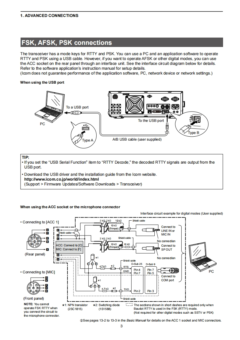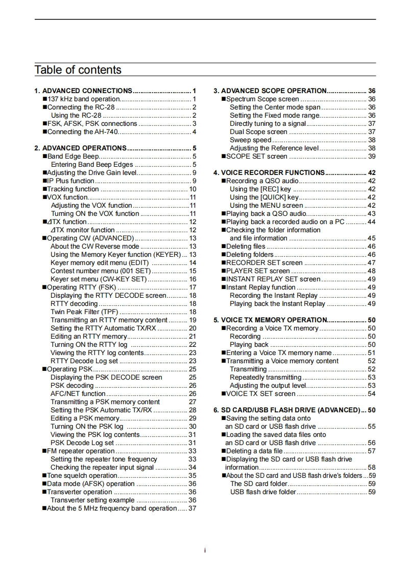 iCOMADVANCED MANUALINTRODUCTION1 ADVANCED CONNECTIONS2 ADVANCED OPERATIONS3 ADVANCED SCOPE OPERATION4 VOICE RECORDER FUNCTIONSHF/50 MHz TRANSCEIVER5 VOICE TX MEMORY OPERATION1C-76106 SD CARD/USB FLASH DRIVE (ADVANCED)7 MEMORY OPERATION8 SCANS9 CLOCK AND TIMERS (ADVANCED)10 ANTENNA TUNER OPERATION (ADVANCED)11 OTHER FUNCTIONS12 MAINTENANCE(ADVANCED)13 UPDATING THE FIRMWAREINDEXInstructions for advanced operations and additionaldetails are described in this manual.See the Basic manual for the basic operations,especially for new users.Icom Inc.
