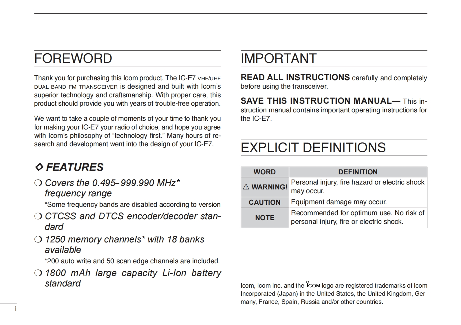 IC-E7_Manual操作说明书手册找手册网31天前发布关注私信4.86MB96页050IC-E7_Manual操作说明书手册此内容为付费资源,请付费后查看¥19¥21黄金会员免费钻石会员免费登录购买付费资源 第1页 / 共96页 第2页 / 共96页 第3页 / 共96页 第4页 / 共96页 第5页 / 共96页 第6页 / 共96页 第7页 / 共96页 第8页 / 共96页 第9页 / 共96页 第10页 / 共96页 试读已结束,还剩86页,您可下载完整版后进行离线阅读 THE END艾可慕 文本预览 ICOMINSTRUCTION MANUALVHF/UHF DUAL BAND FM TRANSCEIVERIC一E7ICOMIC-E733500on8a.2999BANDLOCKM00CALLSCANIcom Inc.SET 查看更多 收起部分 喜欢就支持一下吧收藏