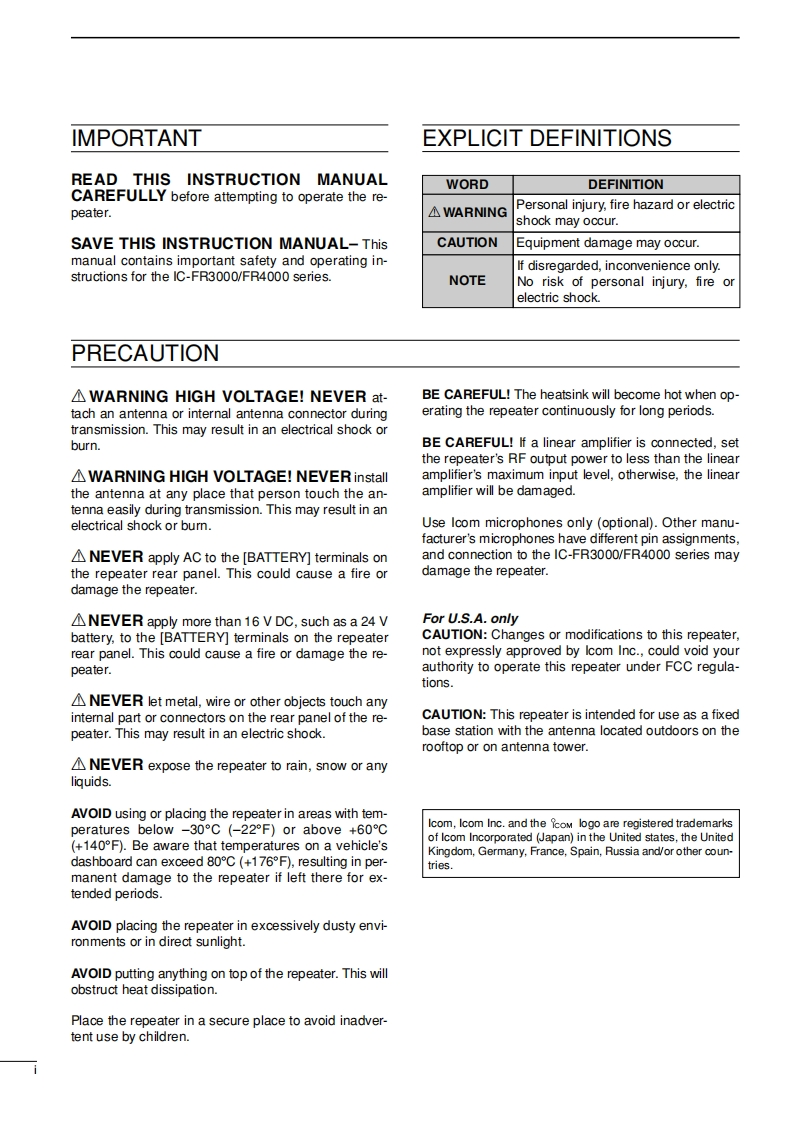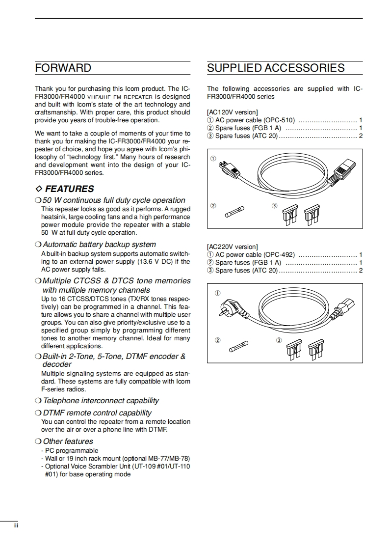 ICOM艾可慕IC-FR3000_IC-FR4000_user操作说明书手册找手册网31天前发布关注私信1.85MB24页044ICOM艾可慕IC-FR3000_IC-FR4000_user操作说明书手册此内容为付费资源,请付费后查看¥19¥21黄金会员免费钻石会员免费登录购买付费资源 第1页 / 共24页 第2页 / 共24页 第3页 / 共24页 第4页 / 共24页 第5页 / 共24页 第6页 / 共24页 第7页 / 共24页 第8页 / 共24页 第9页 / 共24页 第10页 / 共24页 试读已结束,还剩14页,您可下载完整版后进行离线阅读 THE END艾可慕 文本预览 iCOMINSTRUCTION MANUALVHF FM REPEATERIC-FR300052 H lcon Inc.UHF FM REPEATERIC-FR4000Downloaded by▣RadioAmateur.EUIcom Inc. 查看更多 收起部分 喜欢就支持一下吧收藏