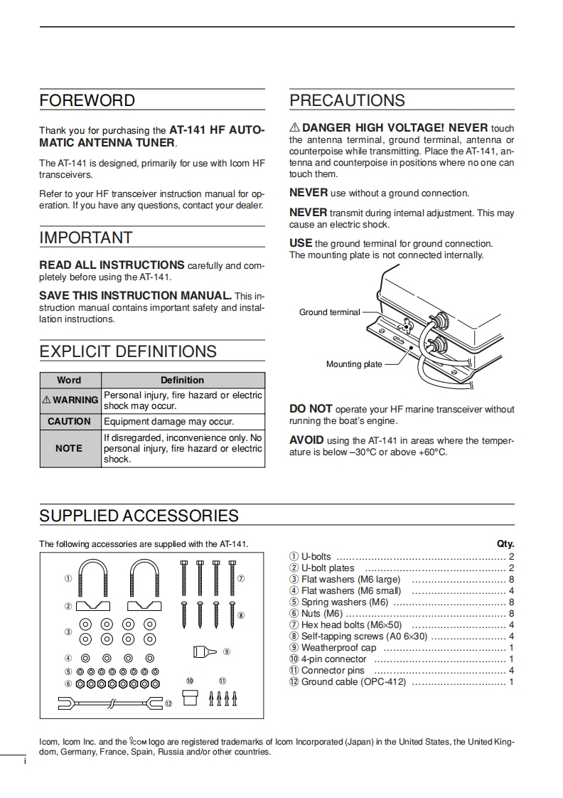 ICOM艾可慕Icom_AT-141_user操作说明书手册找手册网30天前发布关注私信0.64MB11页050ICOM艾可慕Icom_AT-141_user操作说明书手册此内容为付费资源,请付费后查看¥19¥21黄金会员免费钻石会员免费登录购买付费资源 第1页 / 共11页 第2页 / 共11页 第3页 / 共11页 第4页 / 共11页 第5页 / 共11页 第6页 / 共11页 第7页 / 共11页 第8页 / 共11页 第9页 / 共11页 第10页 / 共11页 试读已结束,还剩1页,您可下载完整版后进行离线阅读 THE END艾可慕 文本预览 iCOMINSTRUCTION MANUALHF AUTOMATICANTENNA TUNERAT-141乙2MIcom Inc. 查看更多 收起部分 喜欢就支持一下吧收藏