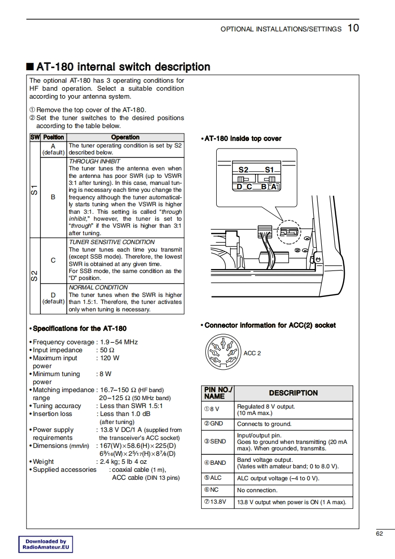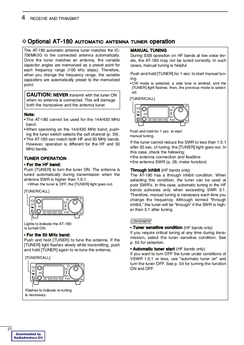 iCOMIcom America,Inc.2380116"Ave NEBellevue,WA 98004425.454.7619AT-180Automatic Antenna TunerOperating InstructionsandService InformationCompiled from the IC-706 Operating Instructions and Service Manual2006 Icom America Inc.Downloaded byRadioAmateur.EU