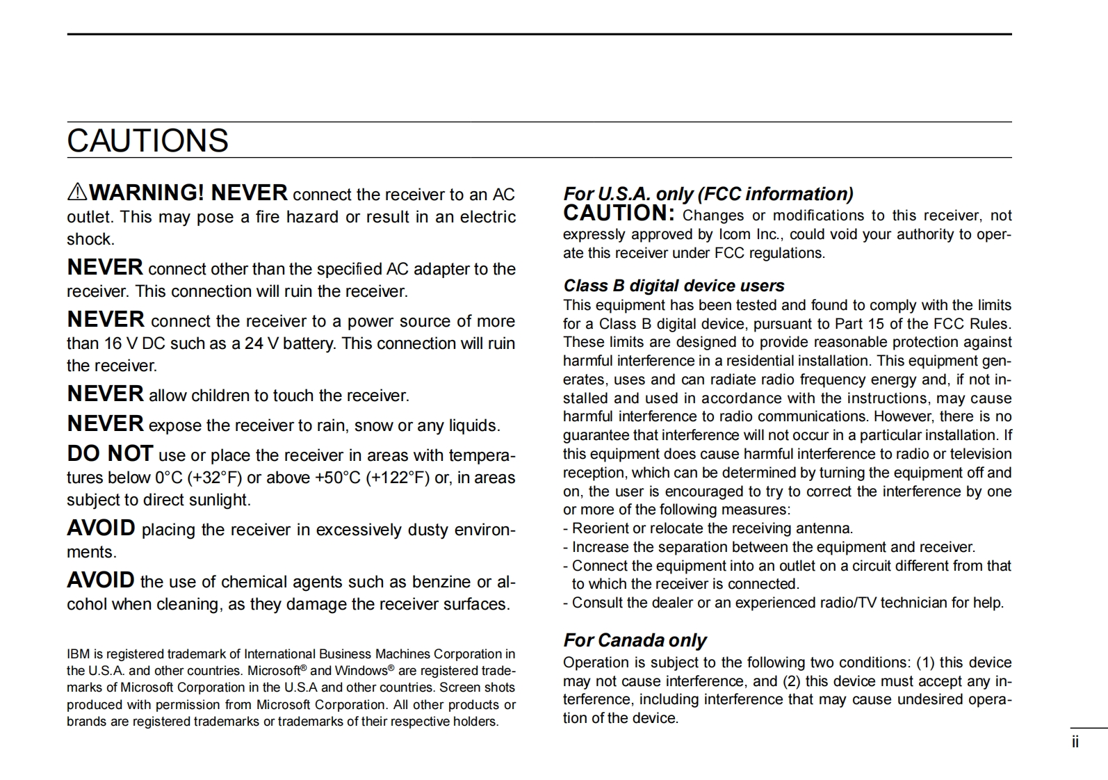 icOmINSTRUCTION MANUALCOMMUNICATIONS RECEIVER FOR COMPUTERC-PCRT00OThis device complies with Part 15 of the FCC Rules.Operation is subject to the following two conditions:(1)This device may not causeharmful interference,and(2)this device must accept any interferencereceived,including interference that may cause undesired operation.Downloaded by▣Amateur Radio DirectoryL▣Icom Inc.www.hamdirectory.info