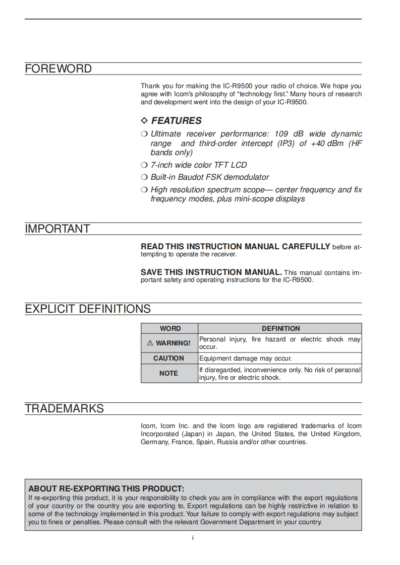 ICOM艾可慕IC-R9500_user操作说明书手册找手册网31天前发布关注私信15.61MB192页033ICOM艾可慕IC-R9500_user操作说明书手册此内容为付费资源,请付费后查看¥19¥21黄金会员免费钻石会员免费登录购买付费资源 第1页 / 共192页 第2页 / 共192页 第3页 / 共192页 第4页 / 共192页 第5页 / 共192页 第6页 / 共192页 第7页 / 共192页 第8页 / 共192页 第9页 / 共192页 第10页 / 共192页 试读已结束,还剩182页,您可下载完整版后进行离线阅读 THE END艾可慕 文本预览 COMMUNICATIONS RECEIVERC-R9500Instruction ManualA-6553H-1EX-③Printed in Japan©2007-2011 lcom Inc. 查看更多 收起部分 喜欢就支持一下吧收藏