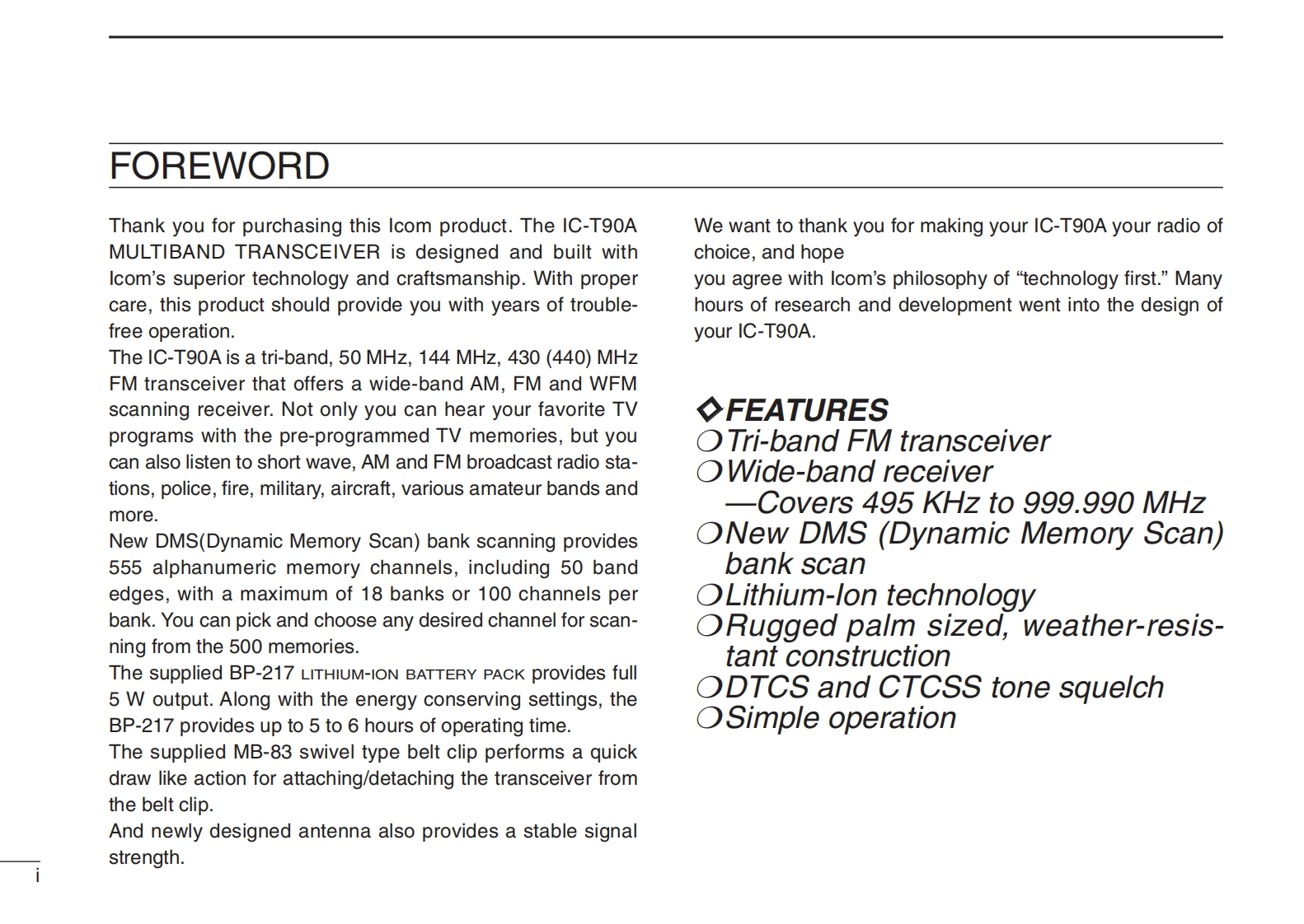 COMINSTRUCTION MANUALMULTIBAND FM TRANSCEIVERIC-T90ADownloaded byRadioAmateur.EUiCOMThis device complies with Part 15 of the FCC Rules.Operation is sub-45.6009扇ject to the following two conditions:(1)This device may not causeLow CEEEEEEEdeharmful interference,and(2)this device must accept any interferenceMULTIBAND TRANSCEIVERreceived,including interference that may cause undesired operation.WARNING:MODIFICATION OF THIS DEVICE TO RECEIVE CEL-LULAR RADIO TELEPHONE SERVICE SIGNALS IS PROHIBITEDUNDER FCC RULES AND FEDERAL LAW品88&岛8品盟Icom Inc.思盟