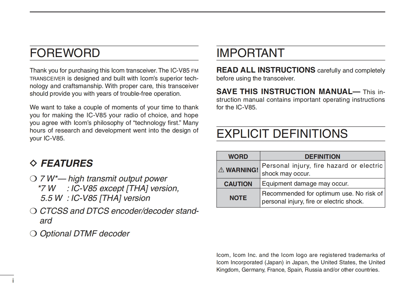 ICOMINSTRUCTION MANUAL,FM TRANSCEIVERCOM9C'85This device complies with Part 15 of the FCC Rules.Operation issubject to the following two conditions:(1)this device may not causeharmful interference,and(2)this device must accept any interference《received,including interference that may cause undesired operation.22司a司666bwTS器veERIcom Inc.