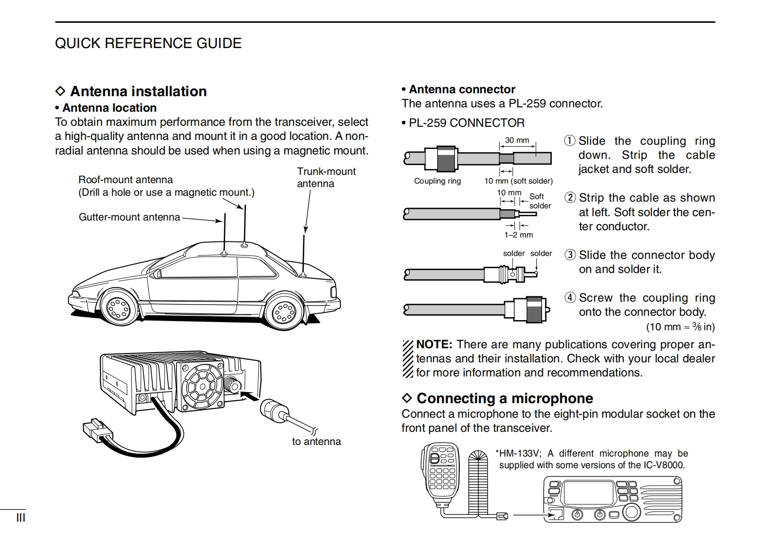 COMINSTRUCTION MANUALVHF FM TRANSCEIVERIC-V8000COM IC-VB00O'8000This device complies with Part 15 of the FCC rules.Operation is sub-ject to the following two conditions:(1)This device may not causeharmful interference,and(2)this device must accept any interferencereceived,including interference that may cause undesired operation.Downloaded byRadioAmateur.EUIcom Inc.