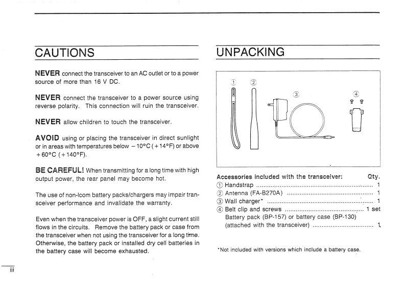 icomINSTRUCTION MANUALDUAL BAND FM TRANSCEIVERIC-W21ATIC-W21ETH5.049780This device compies with Part 15 of the FCC Rules.Operation is sub-ject to the tollowing two conditions:(1)This device may not causeharmful interference,and (2)this device must accept ary interferencereceived.including interterence that may cause undesired operation.The photo shows IC-W21ATwith cptional BP.131.TheIcom Inc.battery pack ditfers accordingto versions.