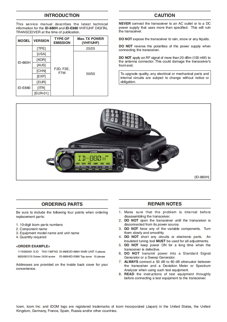 ICOM艾可慕ID-880H_ID-E880_serv维修手册含电器原理图找手册网31天前发布关注私信3.52MB51页036ICOM艾可慕ID-880H_ID-E880_serv维修手册含电器原理图此内容为付费资源,请付费后查看¥19¥21黄金会员免费钻石会员免费登录购买付费资源 第1页 / 共51页 第2页 / 共51页 第3页 / 共51页 第4页 / 共51页 第5页 / 共51页 第6页 / 共51页 第7页 / 共51页 第8页 / 共51页 第9页 / 共51页 第10页 / 共51页 试读已结束,还剩41页,您可下载完整版后进行离线阅读 THE END艾可慕 文本预览 GcOMSERVICEMANUALVHF/UHF DIGITAL TRANSCEIVER1D-880HID-E880S-14529XZ-C1Apr.2009Icom Inc. 查看更多 收起部分 喜欢就支持一下吧收藏
