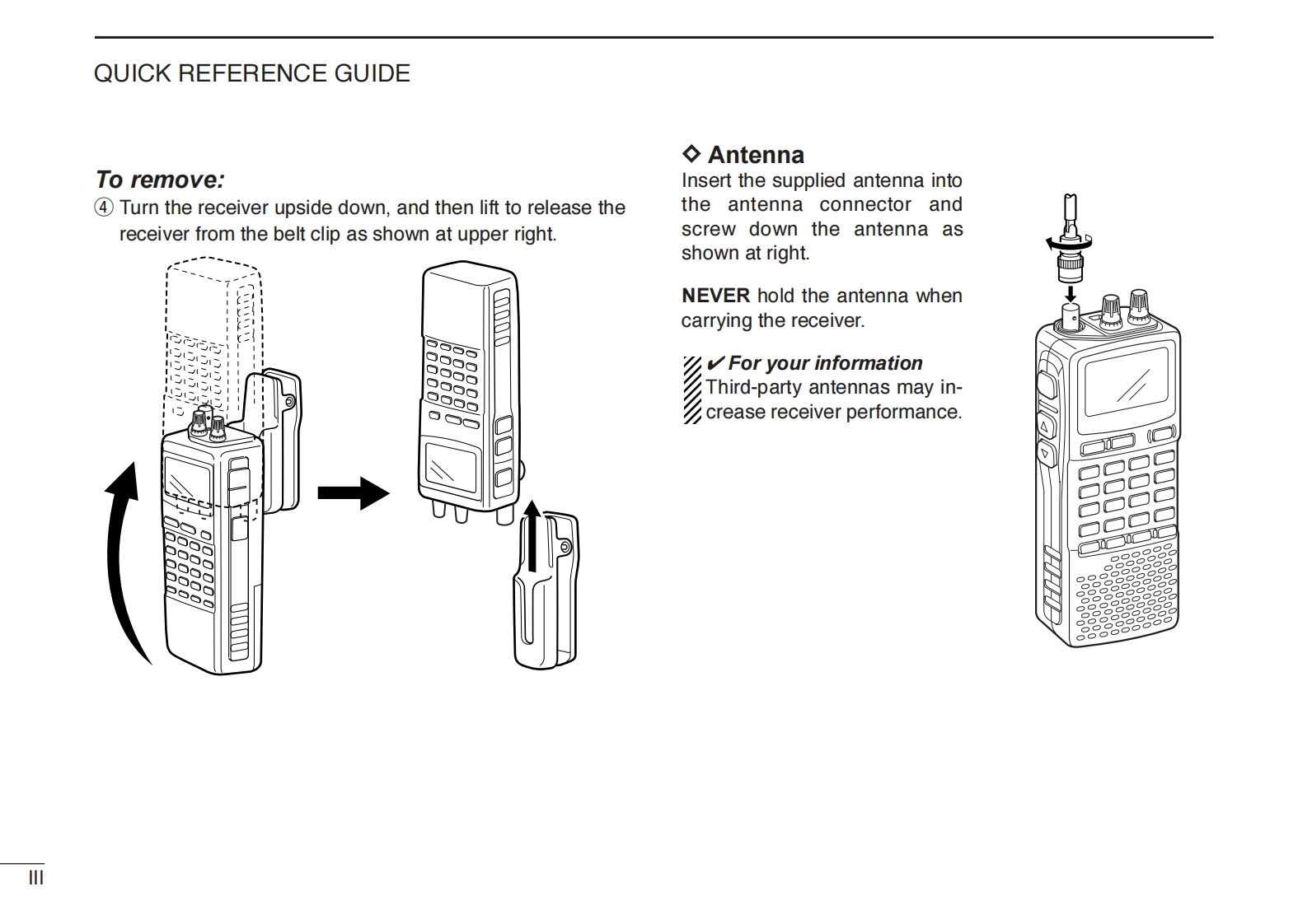 ICOMINSTRUCTION MANUALCOMMUNICATIONS RECEIVERIC-R201C-R203304.9999e voLThis device complies with Part 15 of the FCC rules.Operation is sub-ject to the following two conditions:(1)This device may not causeharmful interference,and(2)this device must accept any interferencereceived,including interference that may cause undesired operation.WARNING:MODIFICATION OF THIS DEVICE TO RECEIVE CEL-LULAR RADIO TELEPHONE SERVICE SIGNALS IS PROHIBITEDiCOMUNDER FCC RULES AND FEDERAL LAW.Icom Inc.