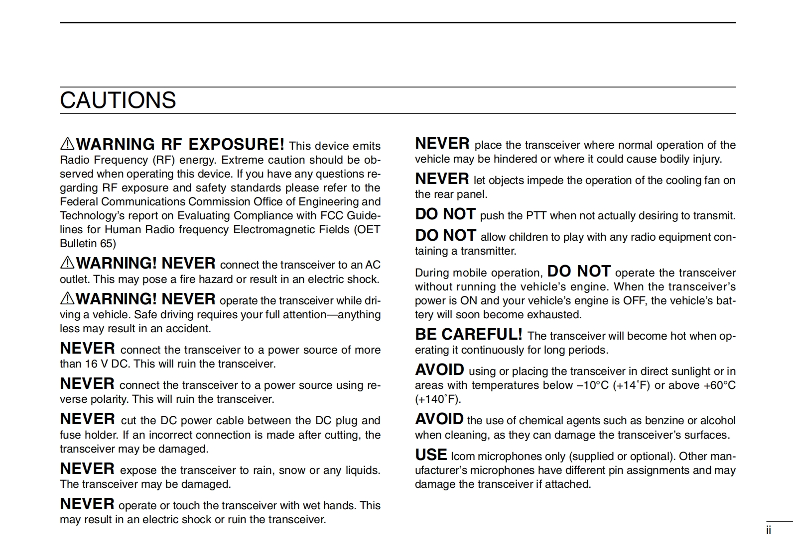 COMINSTRUCTION MANUALVHF FM TRANSCEIVERIC-V8000COM IC-V800O'8000This device complies with Part 15 of the FCC rules.Operation is sub-ject to the following two conditions:(1)This device may not causeharmful interference,and(2)this device must accept any interferencereceived,including interference that may cause undesired operation.Icom Inc.