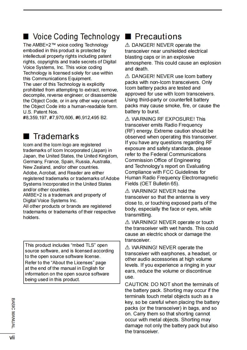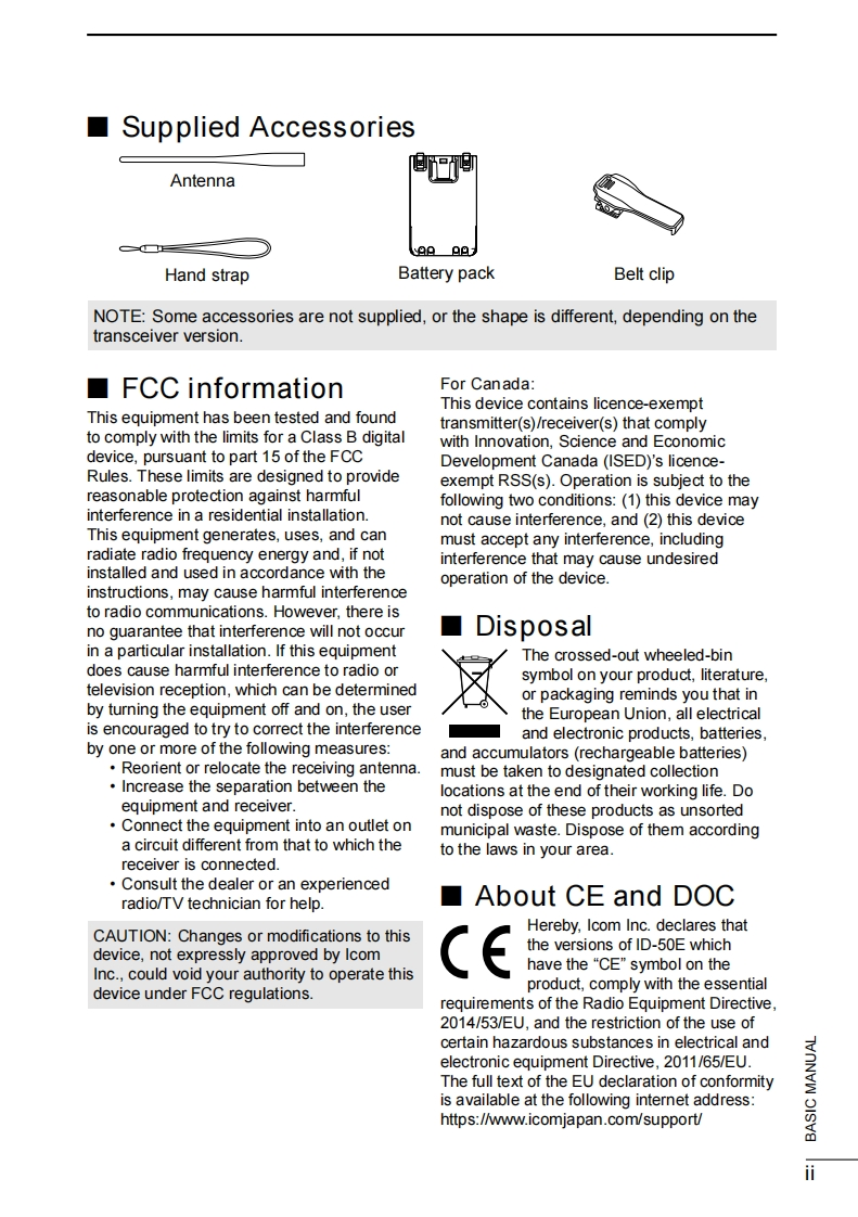 icomBASIC MANUALVHF/UHF TRANSCEIVERB-583This device complies with part 15 of the FCCRules.Operation is subject to the condition thatCOMthis device does not cause harmful interference.145.000WARNING:MODIFICATION OF THIS DEVICEcococoTO RECEIVE CELLULAR RADIOTELEPHONESERVICE SIGNALS IS PROHIBITED UNDERFCC RULESAND FEDERAL LAWIcom Inc.