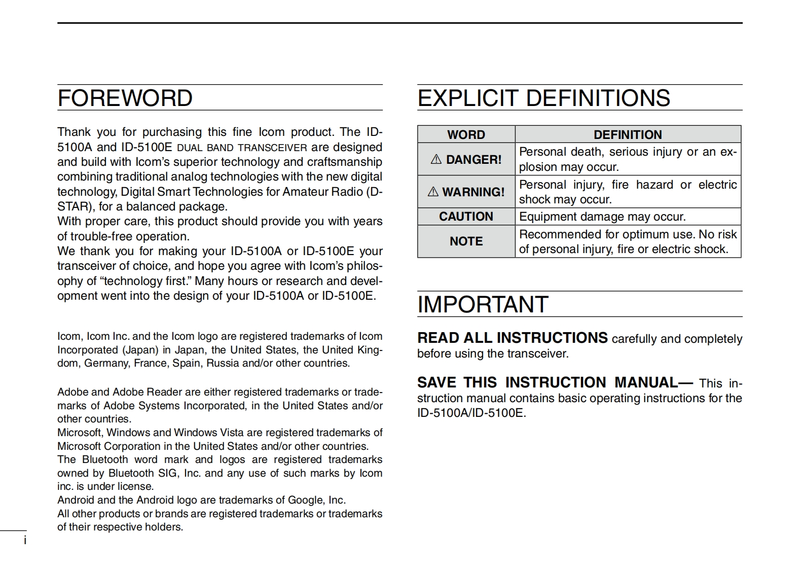 COMBASIC MANUALDUAL BAND TRANSCEIVERID-5100ACOMGPSD-5100E11:12DV MAIN145.500cacacaFROM Herne BayH T.....UR:CQCQCQCOMD1RX>CS CD CS SCAN MONIMENUHOMEDRQUICKThe photo shows the ID-5100E version.This device complies with Part 15 of the FCC Rules.Operation issubject to the following two conditions:(1)this device may not causeharmful interference,and (2)this device must accept any interferencereceived,including interference that may cause undesired operation.WARNING:MODIFICATION OF THIS DEVICE TO RECEIVE CEL-LULAR RADIOTELEPHONE SERVICE SIGNALS IS PROHIBITEDUNDER FCC RULES AND FEDERAL LAW.Icom Inc.