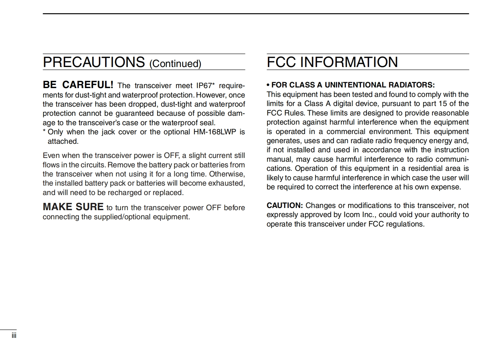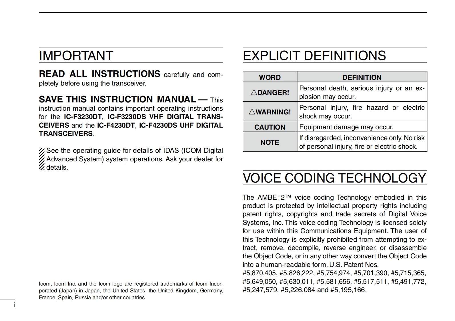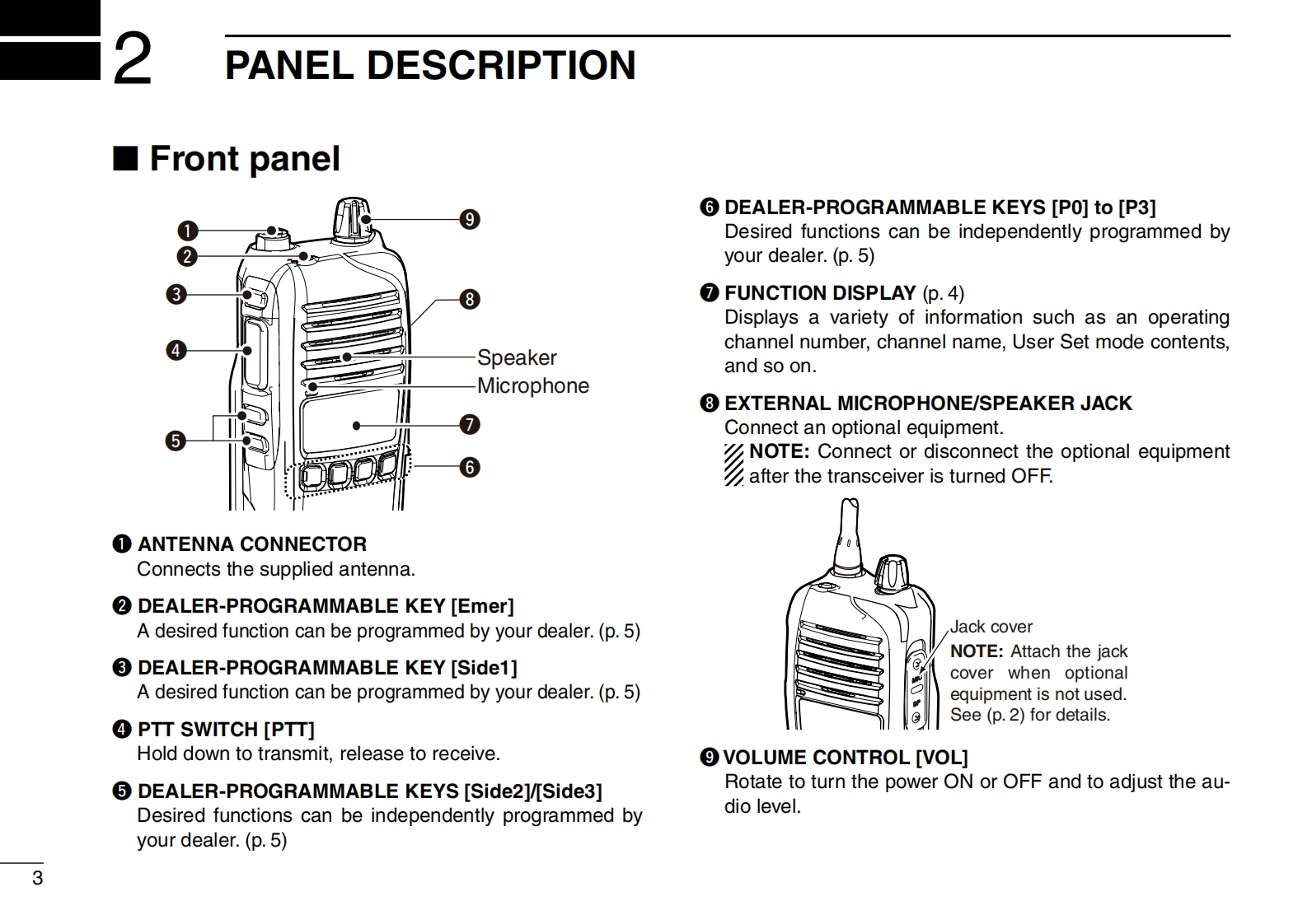 COMINSTRUCTION MANUALVHF DIGITAL TRANSCEIVERSIC-F3230DSeriesUHF DIGITAL TRANSCEIVERSIC-F4230DSeriesCOMThis device complies with Part 15 of the FCC Rules.Opera-Icom Inc.tion is subject to the condition that this device does not causeharmful interference.PO P1 P2 P3The photo shows the VHFIcom Inc.transceiver(S type)