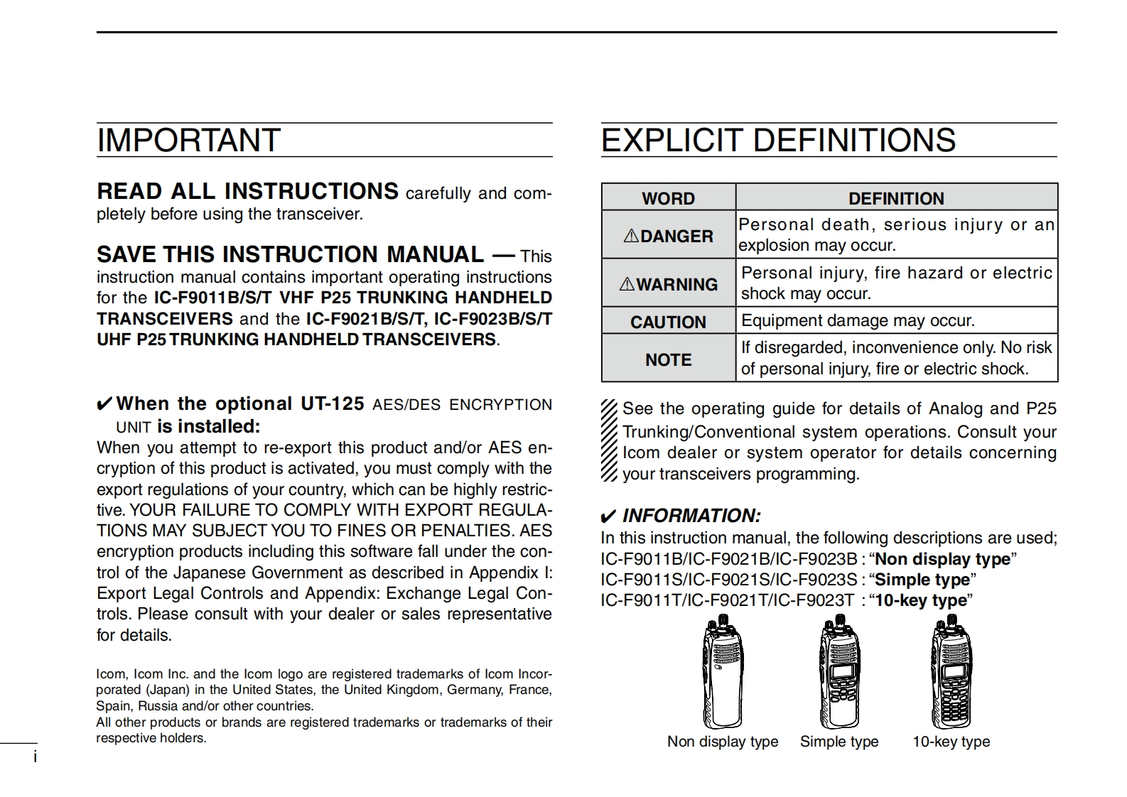 Landmobile_IC-F9011B_S_T_操作说明书手册找手册网31天前发布关注私信2.24MB32页043Landmobile_IC-F9011B_S_T_操作说明书手册此内容为付费资源,请付费后查看¥19¥21黄金会员免费钻石会员免费登录购买付费资源 第1页 / 共32页 第2页 / 共32页 第3页 / 共32页 第4页 / 共32页 第5页 / 共32页 第6页 / 共32页 第7页 / 共32页 第8页 / 共32页 第9页 / 共32页 第10页 / 共32页 试读已结束,还剩22页,您可下载完整版后进行离线阅读 THE END艾可慕 文本预览 COMINSTRUCTION MANUALVHF P25 TRUNKINGHANDHELD TRANSCEIVERSIC-F9011B/S/TUHF P25 TRUNKINGTCOMHANDHELD TRANSCEIVERSIC-F9021B/S/TIC-F9023B/S/Tch-01IC-F9011T36670The photo shows the 10-keyIcom Inc.type VHF transceiver. 查看更多 收起部分 喜欢就支持一下吧收藏
