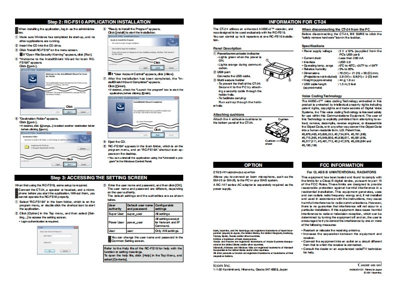Thank you tor purchasing the RC.FS10 REcrsICOMcocATo.The Fomote Communicator oreatesINSTRUCTIONSStep 1:USB DRIVER INSTALLATIONa Windows PC.This allows you to access andREMOTE COMMUNICATORcommunica0 with rptar线andc爱henh物aing the U运hwg,gn越the adnhitra⑦Trd包H出Wirard Cam时td年甲nRC-FS10your IDAS IP Natwork.c女日nn①e sure Windova hi的r由bed its atrt-gndeMs-Tun明compasble versiocasuly.hsart he的nb the CO dive4①白k1 tad US8driver"an the menu scroan】藏银her Accourt Catrd”即pud以Carti,FORWORDUSB Oriver Saup'appaaraSupplied iems白域吐以TA生r the iritalshie性Mirard b com甲t线a过mdhaW心Winde va为at卫)CF245a出C24 B the PC threugh the USBeabiaQ年hgcraiat*M如waM幽*S2a址eym4-eatn由s7B4边htl Purtium 4 16 GHz PU ar beter,ar5T2N色d avaladle mamary ar mato teUspatMamaryCDCd封anhoor Wndow vtaa and wndow山故H100 M d irvd te dok spca图wnh地Gy轴gdpo司地haeh9a鱼af的上山做吐4Reialtian24 x 7 pbod armareCD-ROM dive0t中Gra业whm量it由e的鱼r通中ly fram the nstudia线如pandng an your ay-811a20ot楼g1onC24”甲a戊ha含B diver natall句o空。PRECAUTIONSCAUTIONE NE性npe铺heG2 B nain anaw应yDONOT alow the PC to go rta the slaap ar standby mada由出生THawi damage he C2.'oucan unintal the USB driver uing he'ninutal apro-gam"in he Windo ControlPaneLodow C (3)ar bov +4C(+10P)CONNECT he CT-24 to anly the PC ar an adaguate l-D0oTu轴h动etu中越banina ar ae过olepowerad U5B h山.Otherwb Emayn过okp中yMENU SCREENehhw幻isinr ad rto the幻dh域he miru acneenfoaledyapp网mote Communicster RG-T51D银na meru acremn ap甲anda由e-dick the "AueRun o藏Mn由va Saority'甲hdd银yaha。otid时ea短,电抛安nRO-F5COM
