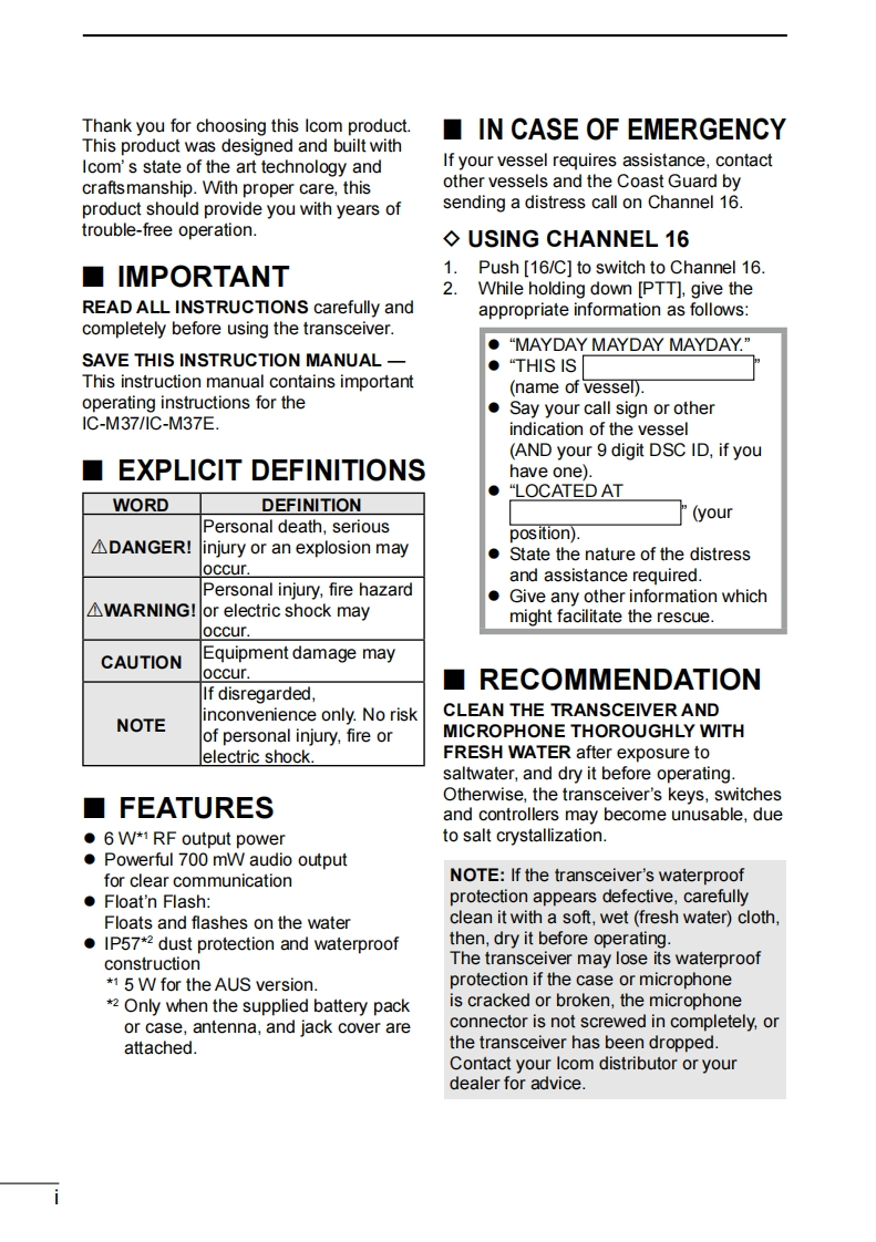 Marine_IC-M37_instruction_manual用户使用操作说明书手册找手册网31天前发布关注私信3.61MB36页021Marine_IC-M37_instruction_manual用户使用操作说明书手册此内容为付费资源,请付费后查看¥19¥21黄金会员免费钻石会员免费登录购买付费资源 第1页 / 共36页 第2页 / 共36页 第3页 / 共36页 第4页 / 共36页 第5页 / 共36页 第6页 / 共36页 第7页 / 共36页 第8页 / 共36页 第9页 / 共36页 第10页 / 共36页 试读已结束,还剩26页,您可下载完整版后进行离线阅读 THE END艾可慕 文本预览 INSTRUCTION MANUALVHF MARINE TRANSCEIVERIE M3ZECOMIC-M37品This device complies with Part 15 ofthe FCC rules.Operation is subject tothe conditions that this device does not鼢cause harmful interference.Icom Inc. 查看更多 收起部分 喜欢就支持一下吧收藏