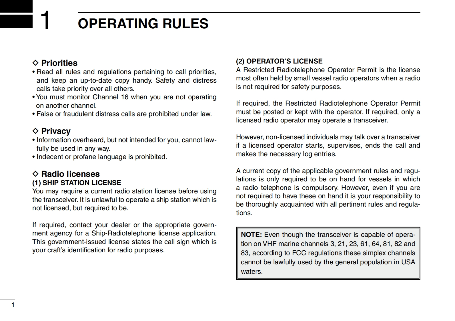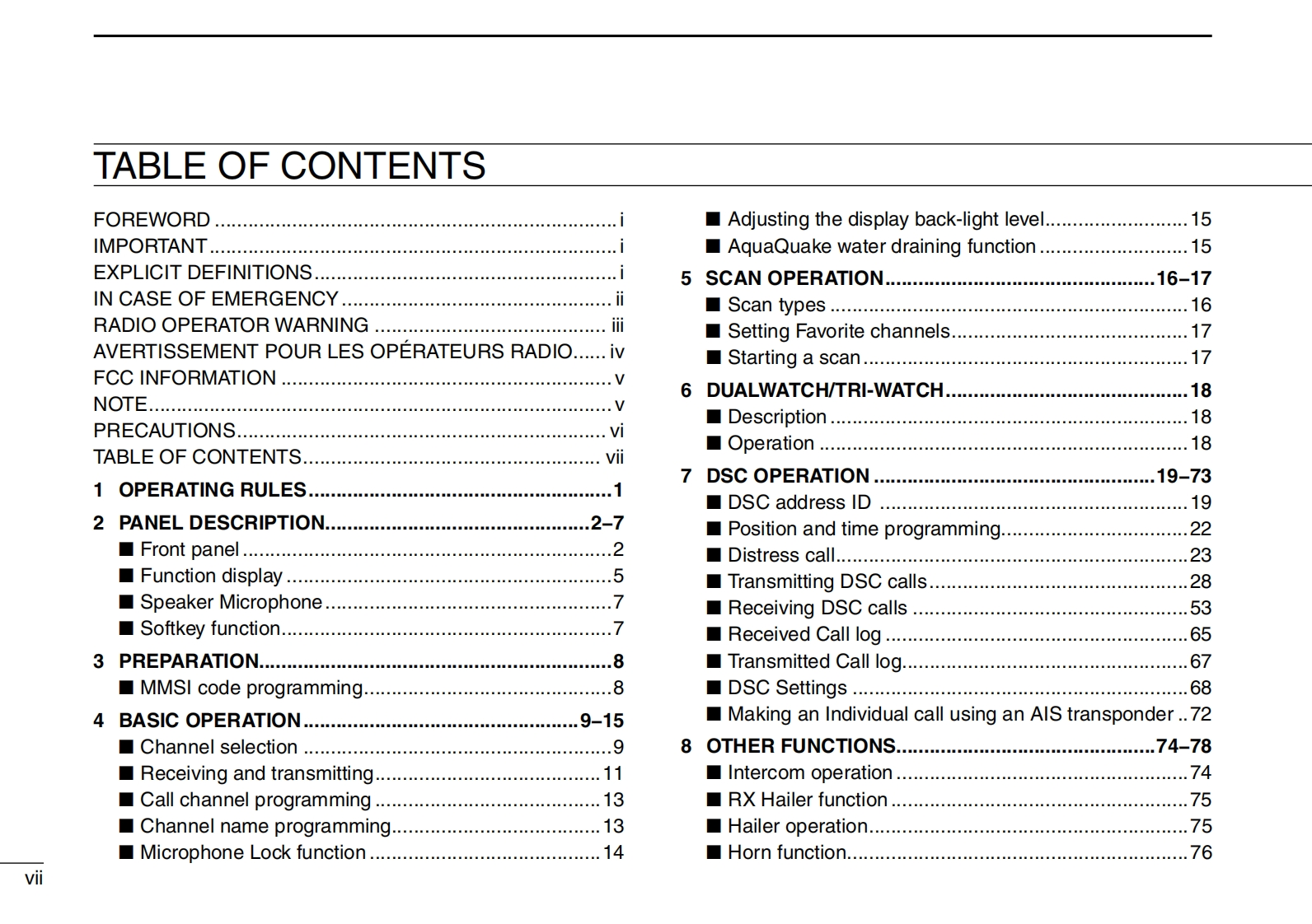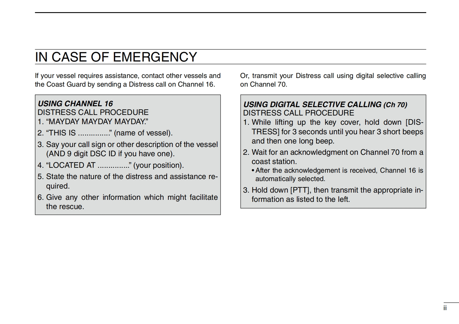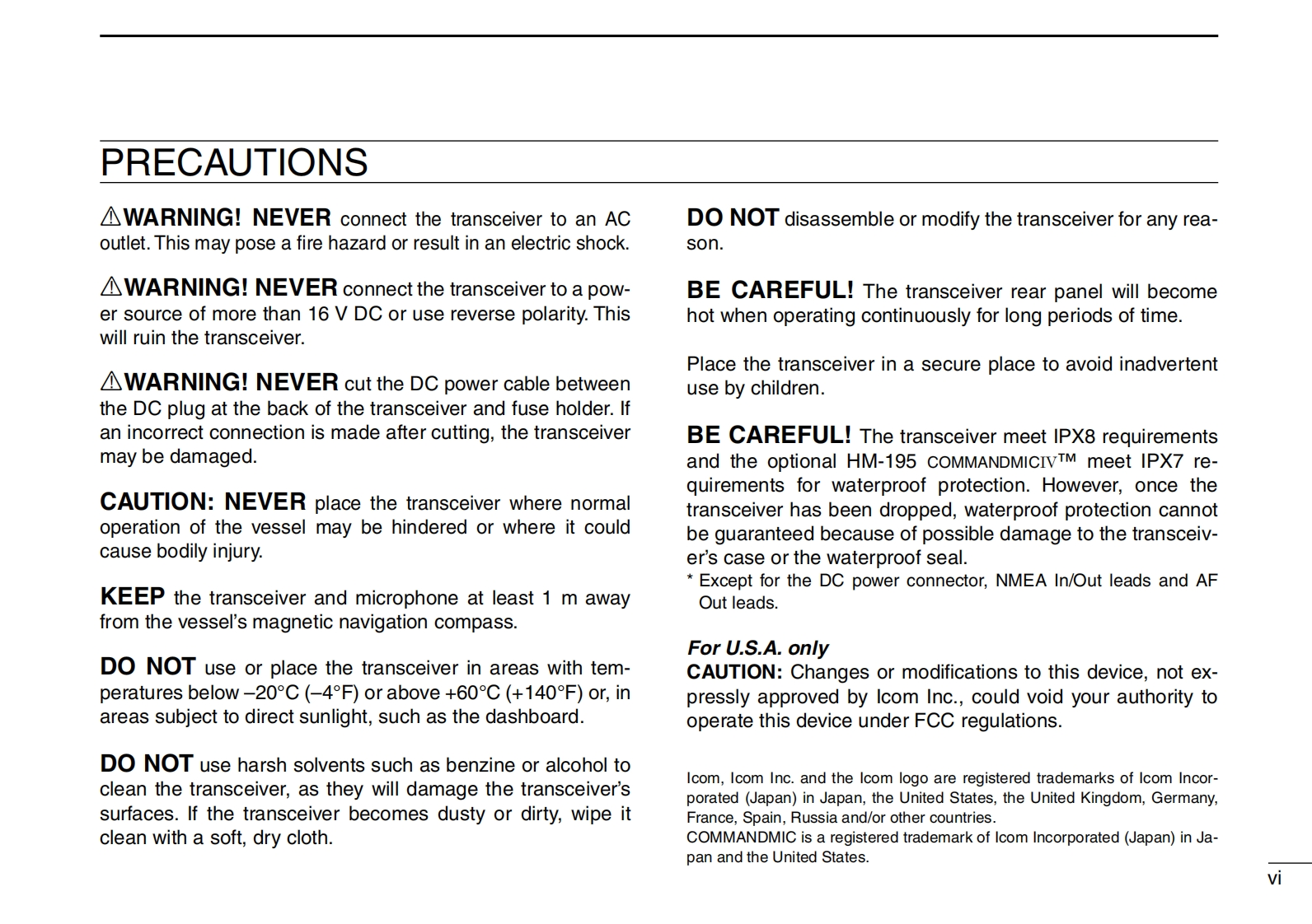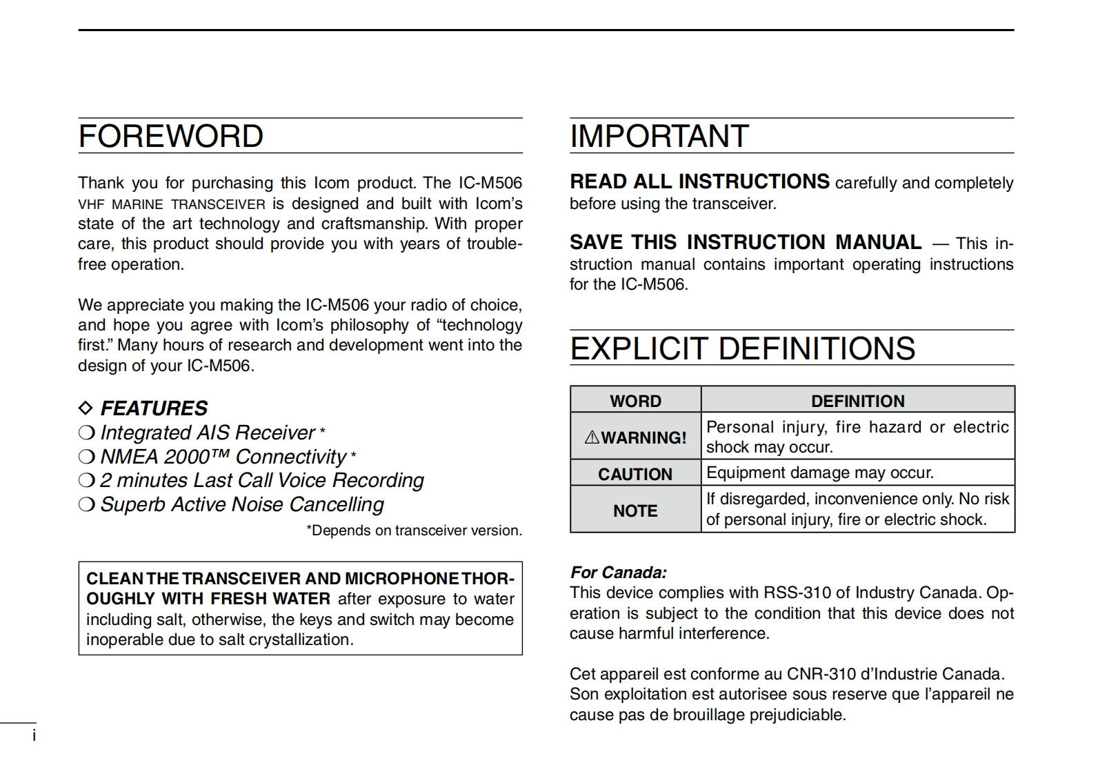 COMINSTRUCTION MANUALVHF MARINE TRANSCEIVERVHF MARINE IC-MSOGC-M5066U5Y25WU5A★16CALLINGMENU CLEAR3nmCH/This device complies with Part 15 of the FCCRules.Operation is subject to the condition thatthis device does not cause harmful interference.Icom Inc.
