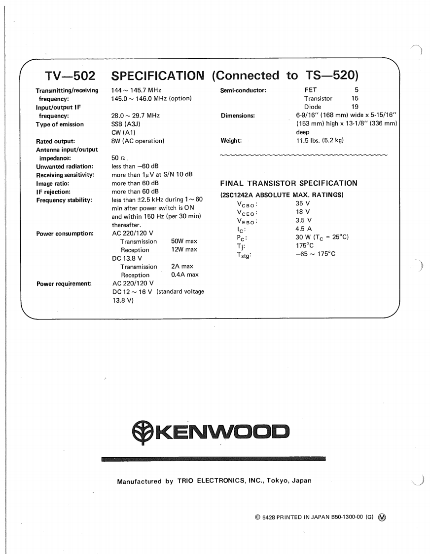 建武Kenwood_TV-502_Manual操作说明书手册找手册网30天前发布关注私信2.61MB7页028建武Kenwood_TV-502_Manual操作说明书手册此内容为付费资源,请付费后查看¥19¥21黄金会员免费钻石会员免费登录购买付费资源 第1页 / 共7页 第2页 / 共7页 第3页 / 共7页 第4页 / 共7页 第5页 / 共7页 第6页 / 共7页 第7页 / 共7页 已完成全部阅读,共7页 THE END建武 文本预览 KENWOOD○2m TRANSVERTERModel TV-502电KENWOOD2mTRANSVERTER MODEL TV-602OPERATING MANUAL 查看更多 收起部分 喜欢就支持一下吧收藏