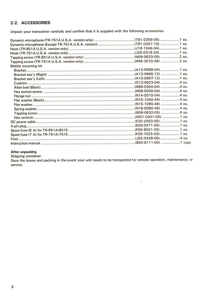 建武Kenwood_TR-751-TR-851_(Manual操作说明书手册)找手册网30天前发布关注私信12.78MB58页048建武Kenwood_TR-751-TR-851_(Manual操作说明书手册)此内容为付费资源,请付费后查看¥19¥21黄金会员免费钻石会员免费登录购买付费资源 第1页 / 共58页 第2页 / 共58页 第3页 / 共58页 第4页 / 共58页 第5页 / 共58页 第6页 / 共58页 第7页 / 共58页 第8页 / 共58页 第9页 / 共58页 第10页 / 共58页 试读已结束,还剩48页,您可下载完整版后进行离线阅读 THE END建武 文本预览 430MHz ALL MODE TRANSCEIVERTR-851ATR-851E144MHz ALL MODE TRANSCEIVERKENWOODTR-751ATR-751EINSTRUCTION MANUALKENWOOD CORPORATIONCPRINTED IN JAPAN B50-8111-00(K,M.T.WX(T)8712111098765432186/12 查看更多 收起部分 喜欢就支持一下吧收藏