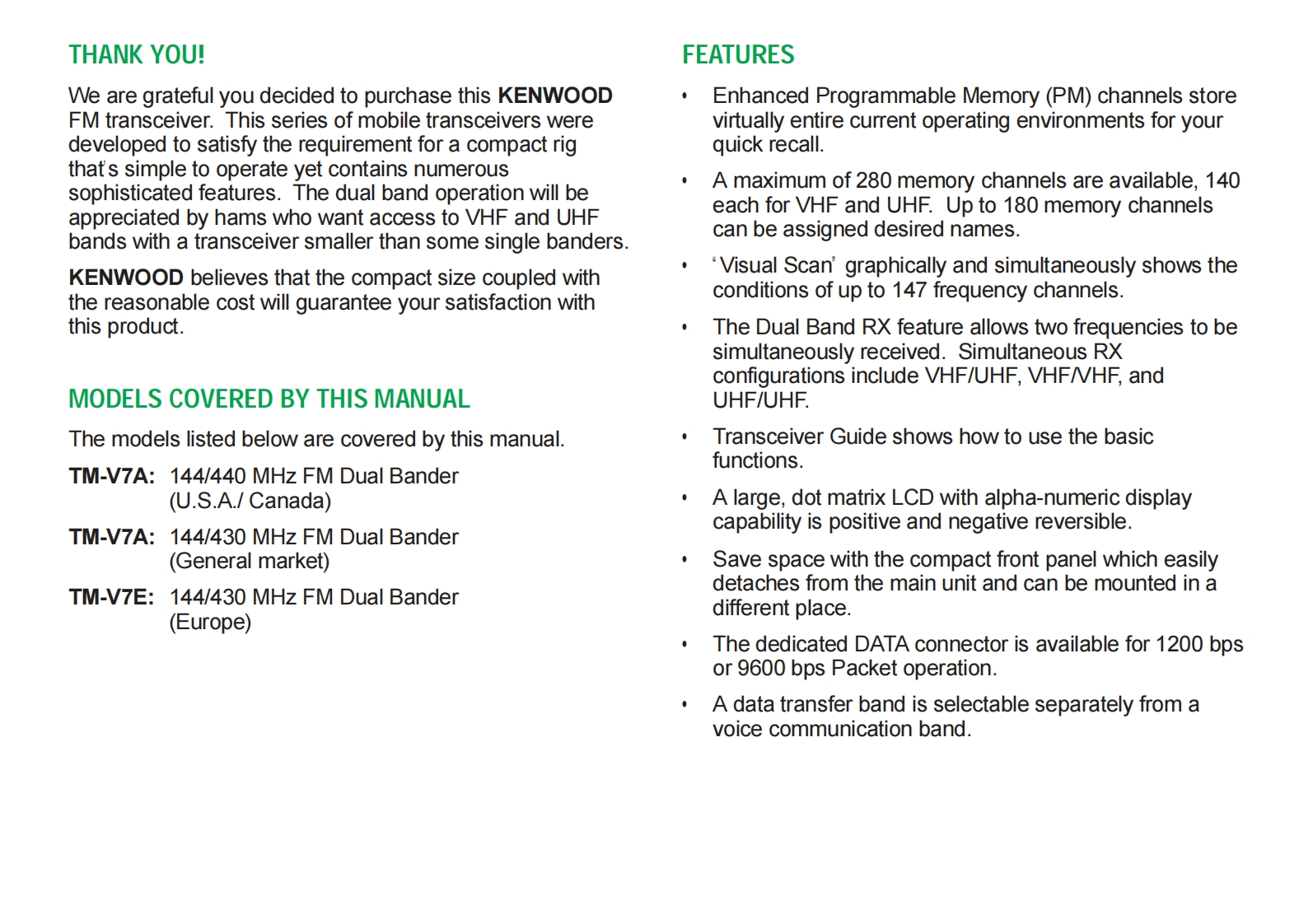 建武Kenwood_TM-V7AE_Manual操作说明书手册找手册网30天前发布关注私信2.36MB100页037建武Kenwood_TM-V7AE_Manual操作说明书手册此内容为付费资源,请付费后查看¥19¥21黄金会员免费钻石会员免费登录购买付费资源 第1页 / 共100页 第2页 / 共100页 第3页 / 共100页 第4页 / 共100页 第5页 / 共100页 第6页 / 共100页 第7页 / 共100页 第8页 / 共100页 第9页 / 共100页 第10页 / 共100页 试读已结束,还剩90页,您可下载完整版后进行离线阅读 THE END建武 文本预览 144/440 MHz FM DUAL BANDERTM-V7A144/430 MHZ FM DUAL BANDERKENWOODTM-V7A144/430 MHz FM DUAL BANDERTM-V7EINSTRUCTION MANUALKENWOOD CORPORATION©B62-0678-20(K,E,M0908070605040302 查看更多 收起部分 喜欢就支持一下吧收藏