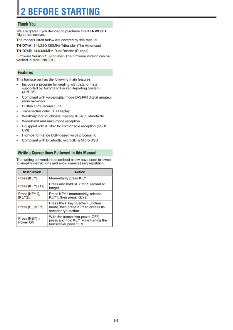 KENWOODTH-D74ATH-D74EUSER MANUALThis User Manual covers detailed operating instructions of the TH-D74A/Eincluding basic operating instructions described in the User Guide comeswith the product.KENWOODTH-D74JVCKENWOOD CorporationB5A-1253-00/04