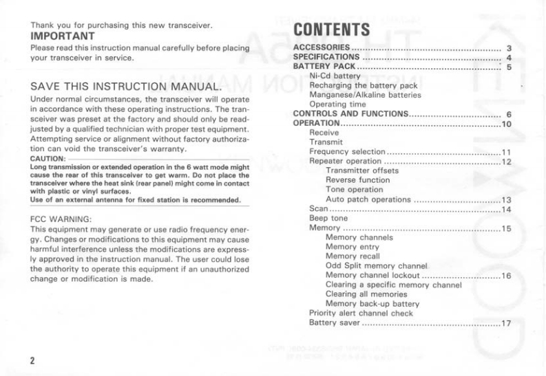 建武Kenwood_TH-225A_Manual操作说明书手册找手册网31天前发布关注私信1.32MB20页025建武Kenwood_TH-225A_Manual操作说明书手册此内容为付费资源,请付费后查看¥19¥21黄金会员免费钻石会员免费登录购买付费资源 第1页 / 共20页 第2页 / 共20页 第3页 / 共20页 第4页 / 共20页 第5页 / 共20页 第6页 / 共20页 第7页 / 共20页 第8页 / 共20页 第9页 / 共20页 第10页 / 共20页 试读已结束,还剩10页,您可下载完整版后进行离线阅读 THE END建武 文本预览 144MHz FM TRANSCEIVERTH-225AKENWOODINSTRUCTION MANUALKENWOOD CORPORATIONCPRINTED IN JAPAN B50-8334-00(K,P)(T)90/12111098765432189/121110 查看更多 收起部分 喜欢就支持一下吧收藏