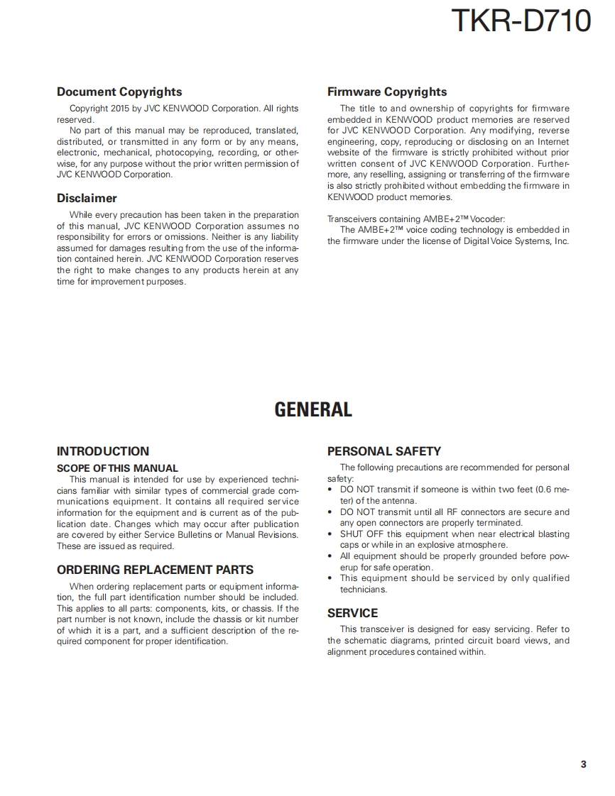 KENWOODSERVICE MANUALVHF DIGITAL BASE-REPEATERTKR-D710K version0@KENWOOD8.8回DMR REPEATER。©回回回包回回LFThis product complies with the RoHS directive for the European market.This product uses Lead Free solder.B5B-7228-00COPYRIGHT 2015 JVC KENWOOD CorporationNo.RQ1482015/12