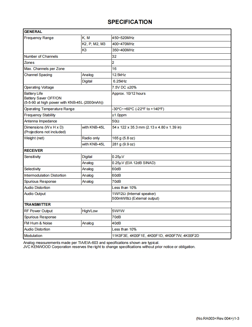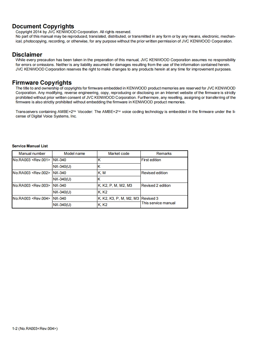 KENWOODSERVICE MANUALUHF DIGITAL TRANSCEIVERNX-340,NX-340(U)KENWOOD⊙Note:Lead free solder used in the board(material:Sn,Ag.In,Bi,melting point:227 Centigrade)TABLE OF CONTENTS1PRECAUTION..·。。。142SPECIFICSERVICEINSTRUCTIONS......................................................1-4DISASSEMBLY.1-134ADJUSTMENT5TROUBLESHOOTING...…1-161-20REVISEDⅢThis service manual has been revised due to the addition of NX-340 type K3LF)LFThis product complies with the RoHS directive for the European market.This product uses Lead Free solderB5B-7102-20COPYRIGHT 2014 JVC KENWOOD CorporationNo.RA0032014/12