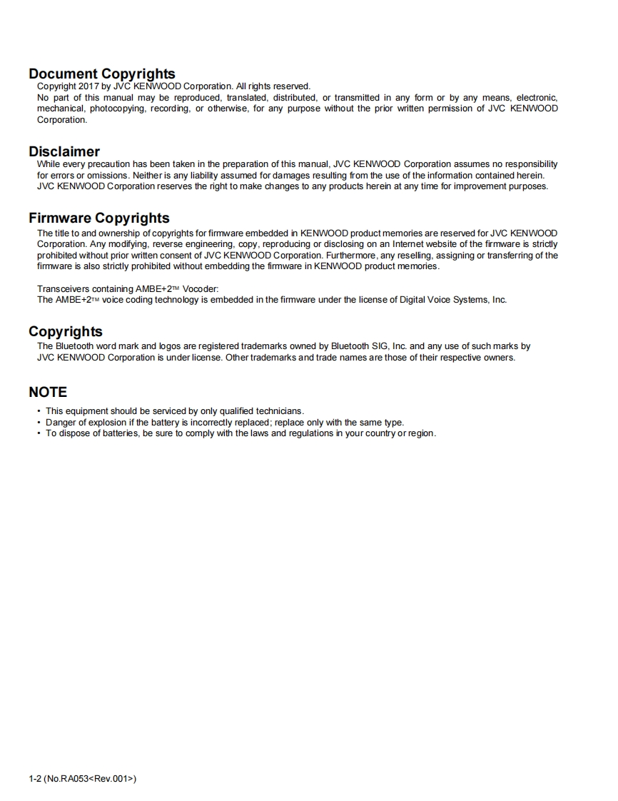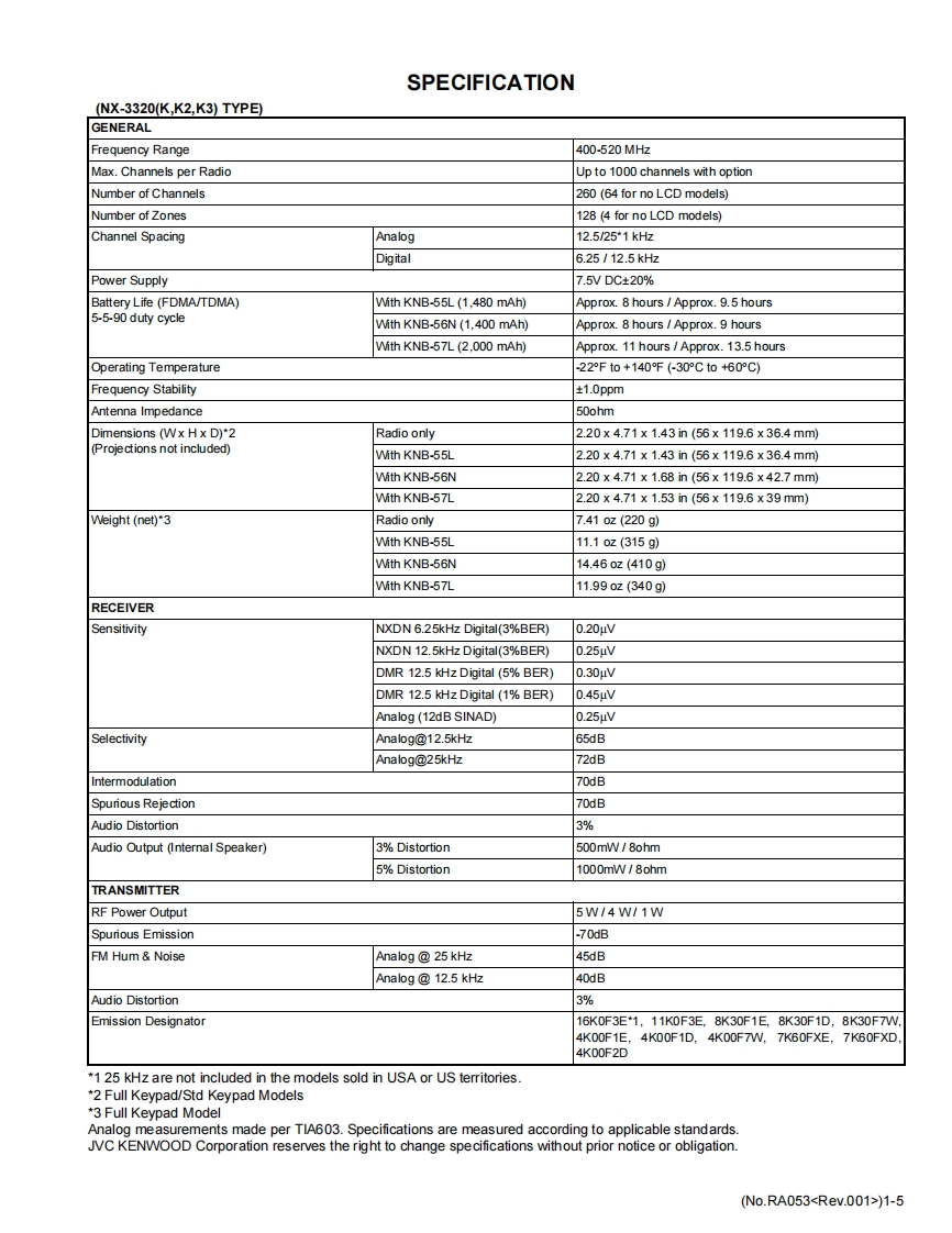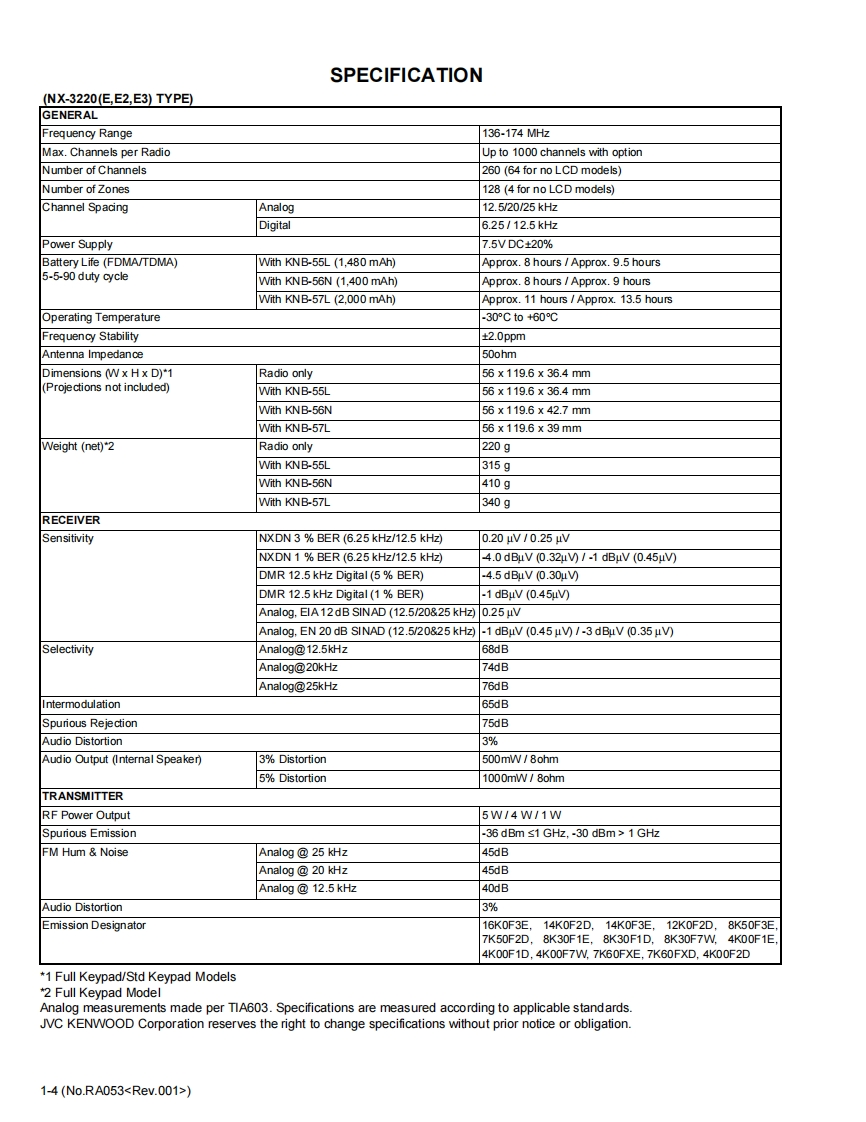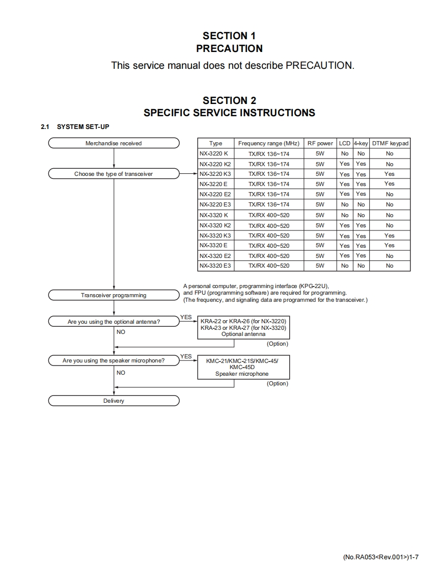 KENWOODSERVICE MANUALVHF DIGITAL TRANSCEIVER,UHF DIGITAL TRANSCEIVERNX-3220,NX-3320NX-3220,NX-3320K,E3NX-3220,NX-3320K2,E2NX-3220,NX-3320K3,EKENWOODKENWOODKENWOOD2-o-13E]6】[8 Tw0#)TABLE OF CONTENTS1PRECAUTION..…1-7SPECIFIC SERVICEINSTRUCTIONS......................................................1-73DISASSEMBLY…….1-26ADJUSTMENT1-315TROUBLESHOOTING.......................1-149LFLFThis product complies with the RoHS directive for the European market.This product uses Lead Free solder.B5B-7267-00COPYRIGHT 2017 JVC KENWOOD CorporationNo.RA0532017/6