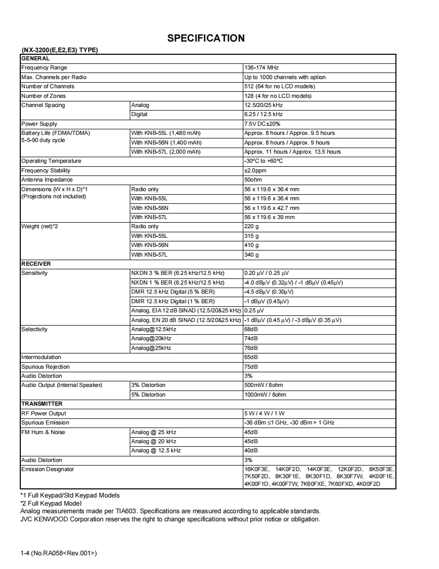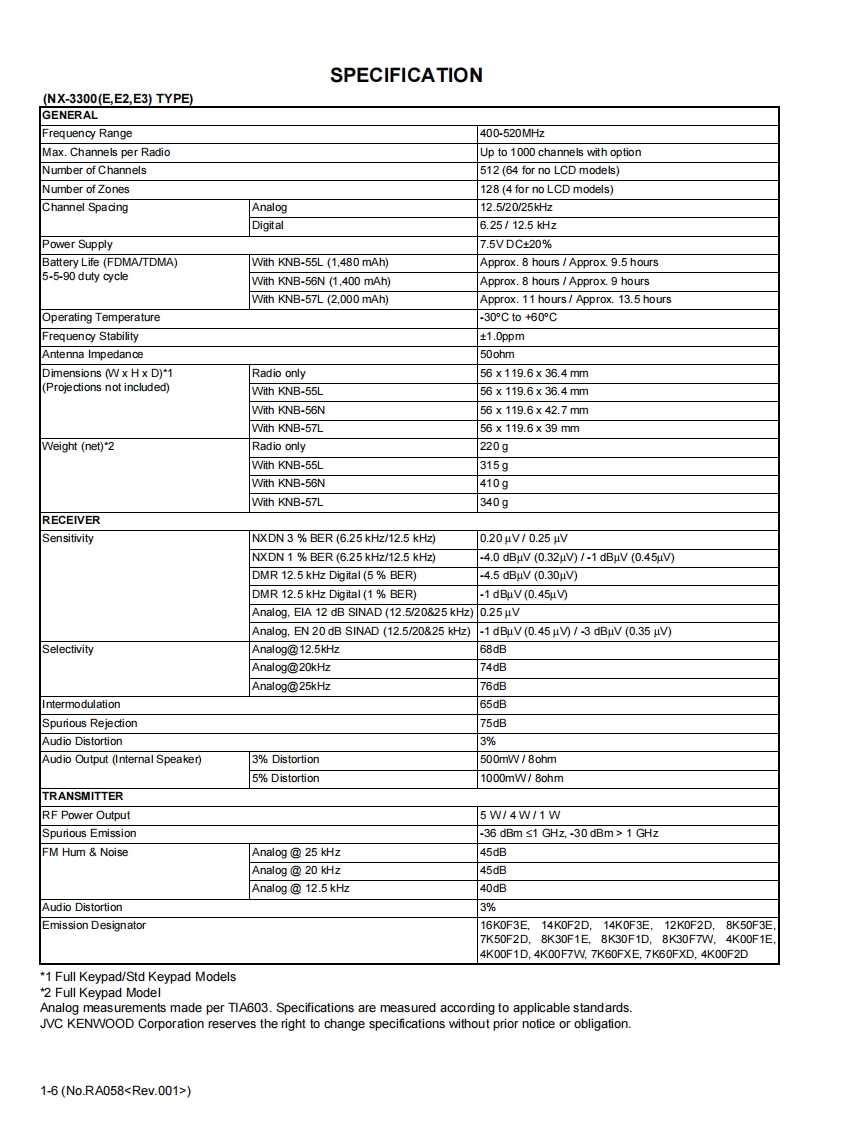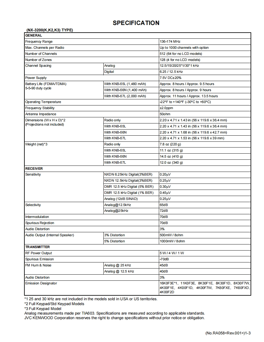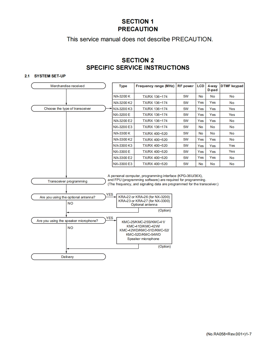 KENWOODSERVICE MANUALVHF DIGITAL TRANSCEIVER,UHF DIGITAL TRANSCEIVERNX-3200,NX-3300NX-3200,NX-3300K,E3NX-3200,NX-3300K2,E2NX-3200,NX-3300K3,EKENWOODKENWOOD】09x园《*0#)TABLE OF CONTENTS1PRECAUTION............................…1-72SPECIFICSERVICEINSTRUCTIONS.......................…….1-7DISASSEMBLY1-274ADJUSTMENT ......................................................1-325TROUBLESHOOTING........................1-154LFThis product complies with the RoHS directive for the European market.This product uses Lead Free solder.B5B-7275-00COPYRIGHT 2017 JVC KENWOOD CorporationNo.RA0582017/10