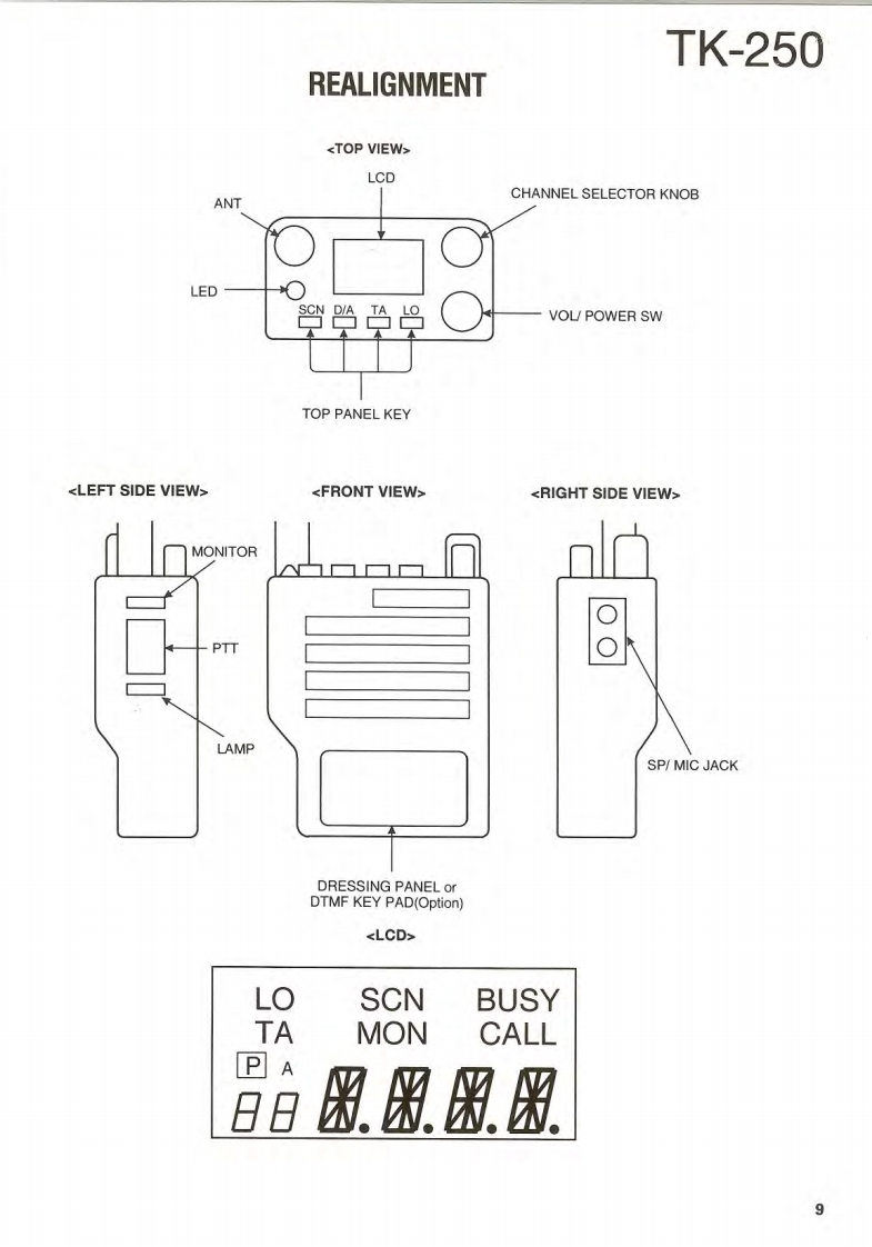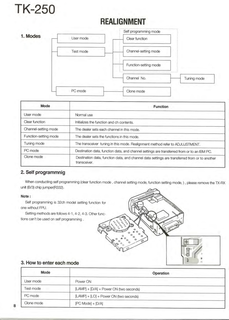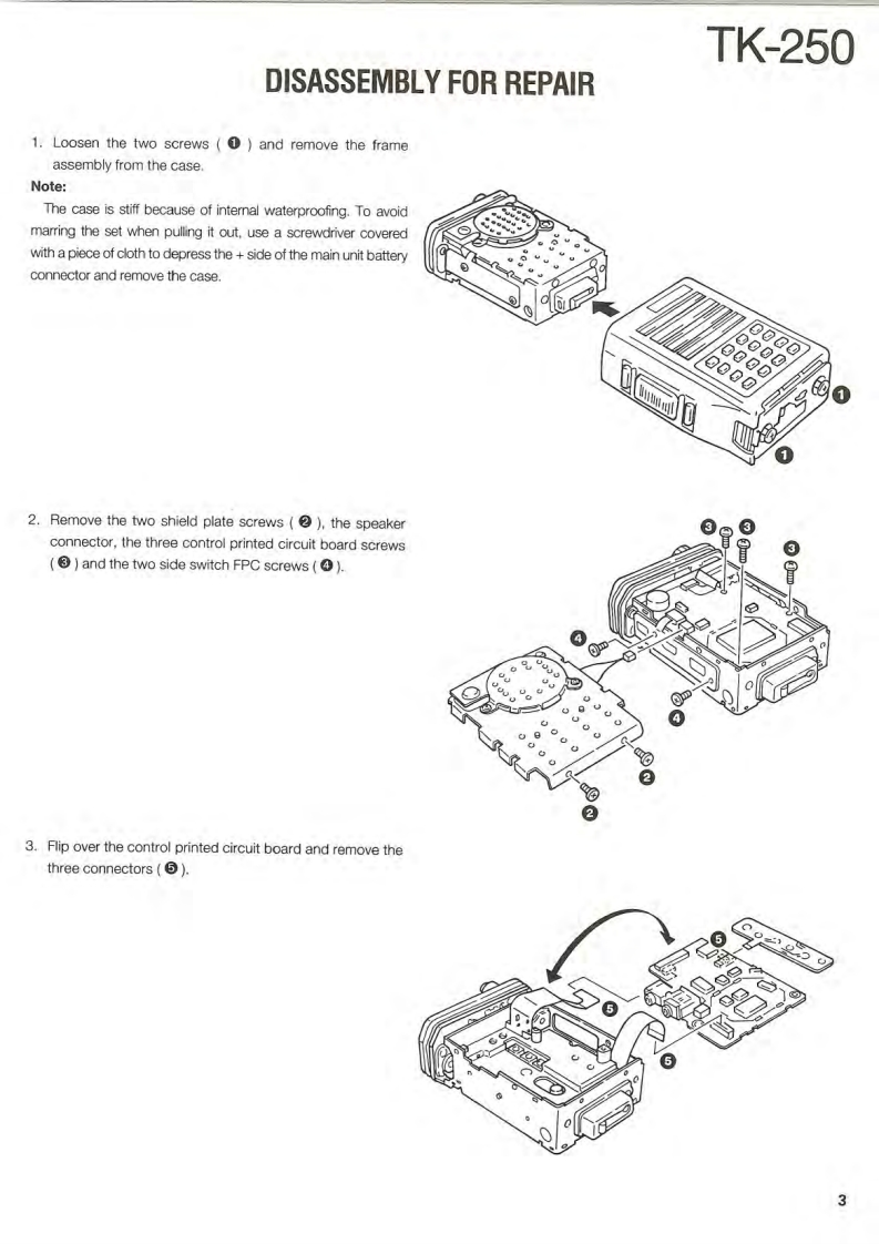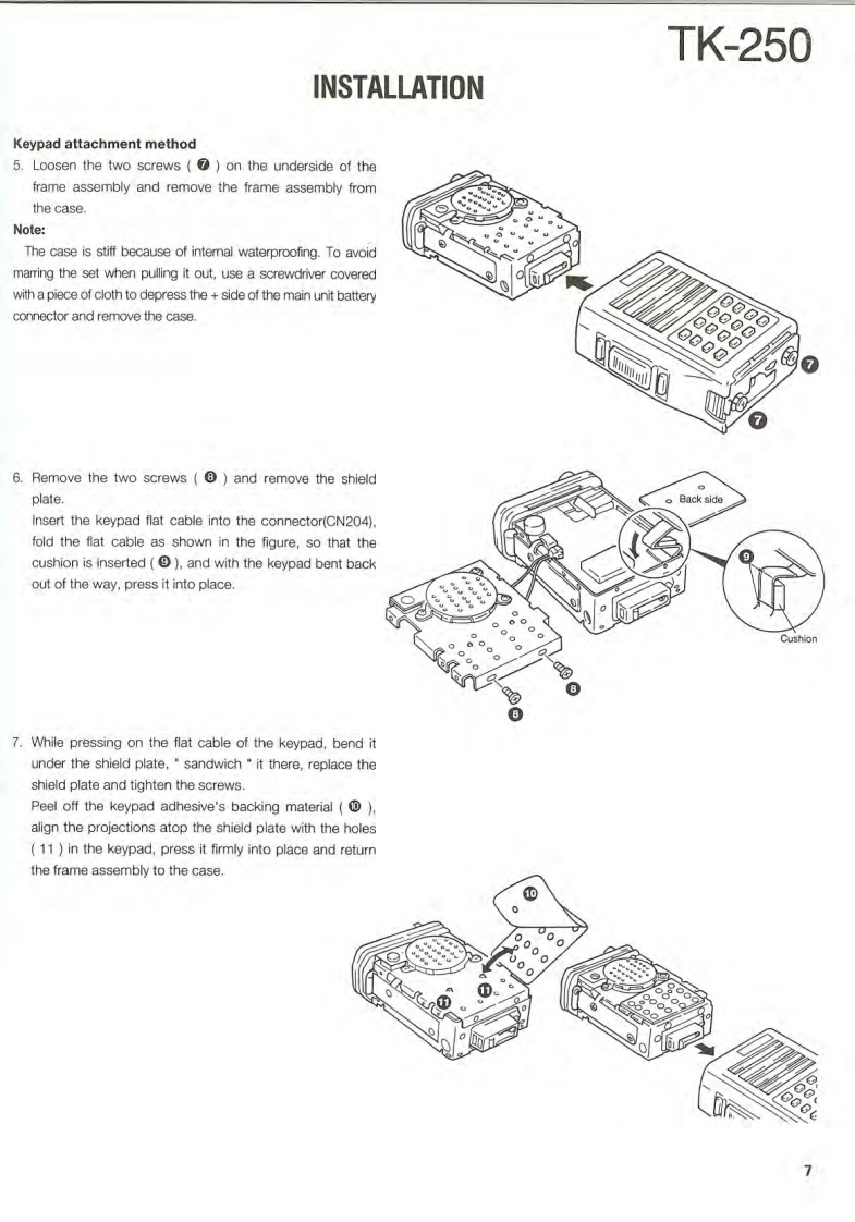 VHF FM TRANSCEIVERTK-250KENWOODSERVICE MANUALREVISED1995-4 PRINTED IN JAPANB51-8279-20(B)1558This service manual is the same as the service manual(B51-8279-10)for TK-250(K,K2,M and M2 destina-tions except that this manual contains new items (T,Edestinations).Use it together with the previous service manual (B51-8279-10).CONTENTSGENERALAntennaDISASSEMBLY FOR REPAIR..9T90-7INSTALLATION.6REALIGNMENT*154611*CIRCUIT DESCRIPTION....16SEMICONDUCTOR DATA.........24DESCRIPTION OF COMPONENTS......31Knob(CHANNEL SELECTOR)PARTS LIST330K29-4920-03EXPLODED VIEW…40PACKING42TERMINAL FUNCTION.......43ADJUSTMENT............416416141*46PC BOARD VIEWSKnob(VOLUME)0K29-4918-03)VC0 UNIT(X:58-4130-10)…51VC0UNTX58-4290-50)m52TX-RX UNIT(X57-444X-XX)(A/3)..53BadgeTX-RX UNIT(X57-444X-XX)(B/3)....Knob(PTT)(B43-1100-04)TX-RX UNIT(X57-4442-71)(A/3)..61K29-4917-02TX-RX UNIT(X57-4442-71)(B/3).65TX-RX UNIT(X57-444X-XX)(C/3)....69SCHEMATIC DIAGRAM.......73Dressing panelA21-1544-03)BLOCK DIAGRAM…81Cabinet(A02-1829-01)LEVEL DIAGRAM83KDM-7(DTMF KEY PAD).84KHS-1 (HEAD SET WITH VOX PTT)........84KSC-76(MULTIPLE RAPID CHARGER).............86KSC-8(COMPACT CHARGER)..89KSC-86 (MULTIPLE CHARGER)...90KNB-11A/12A(Ni-Cd BATTERY)..93KPG-22(PC PROGRAM INTERFACE)............93SPECIFICATIONS..BACK COVER"Refer to parts list on page 33.CAUTION:When using an external power connector,please use with maximum final moduleprotection of 9V.