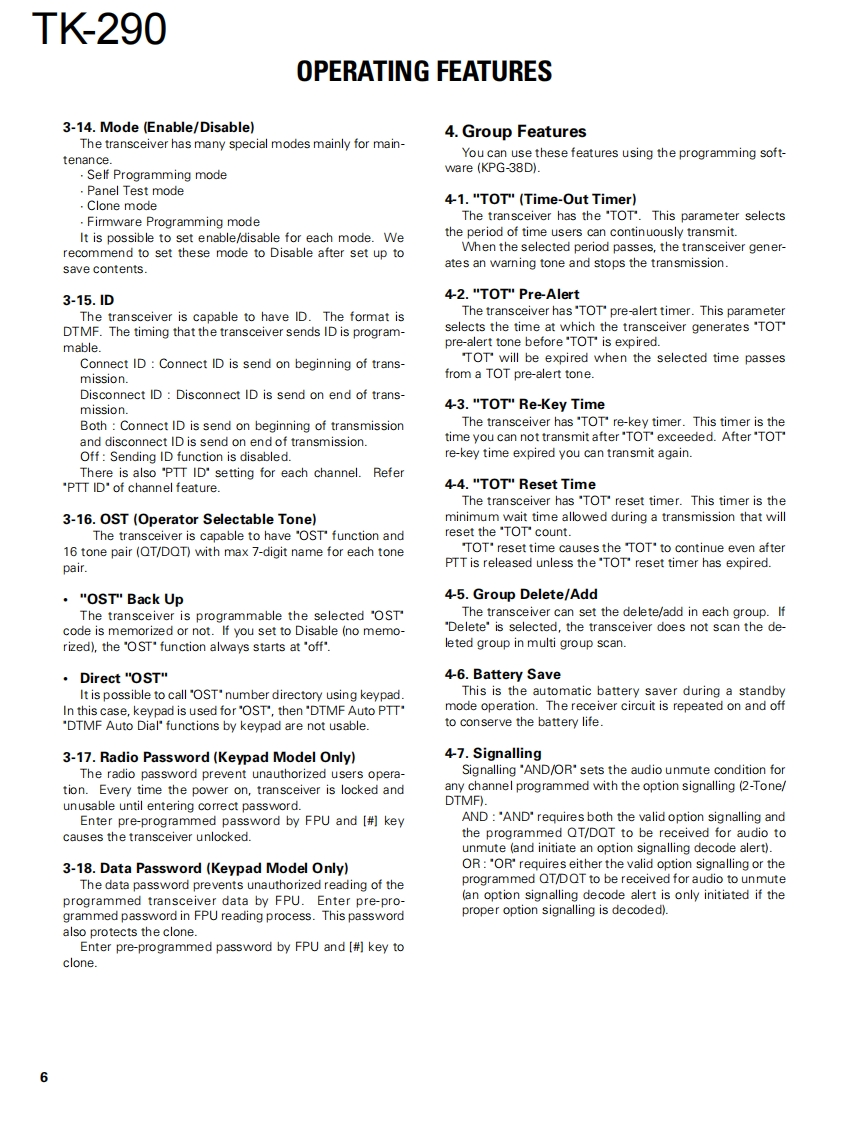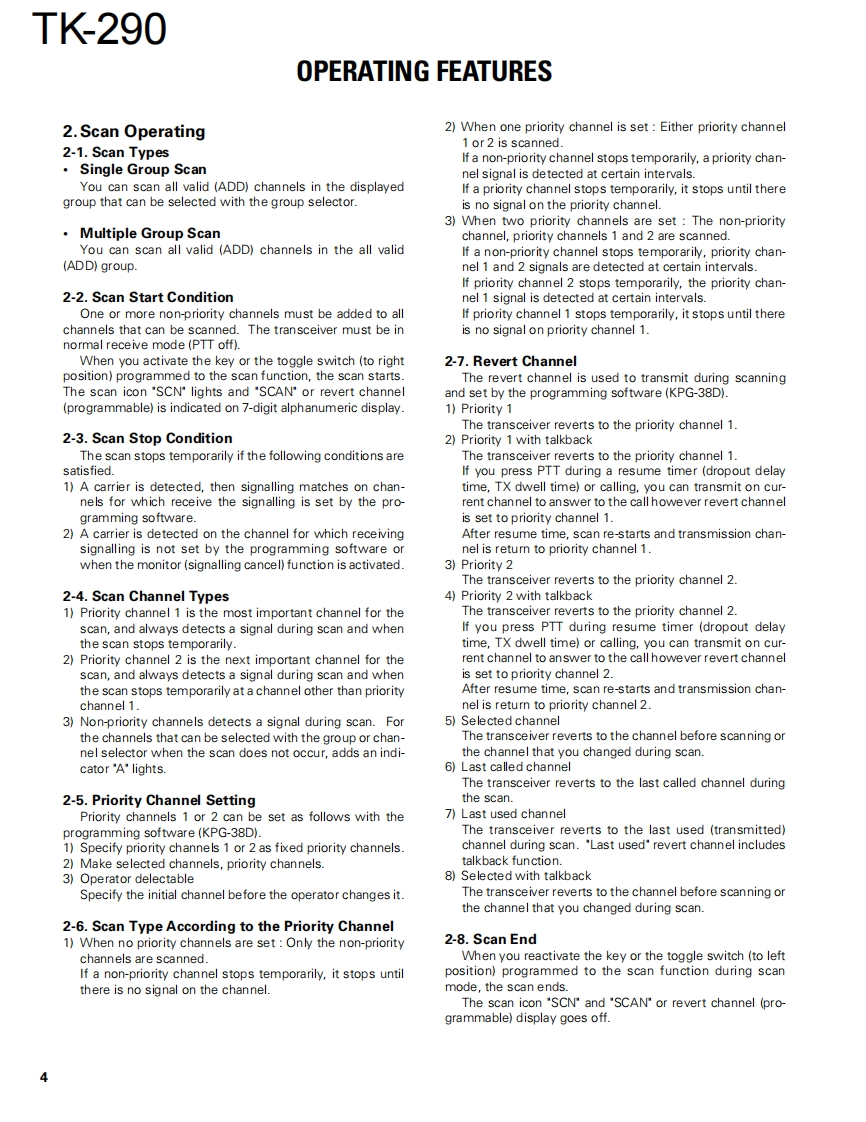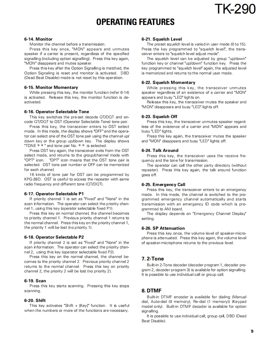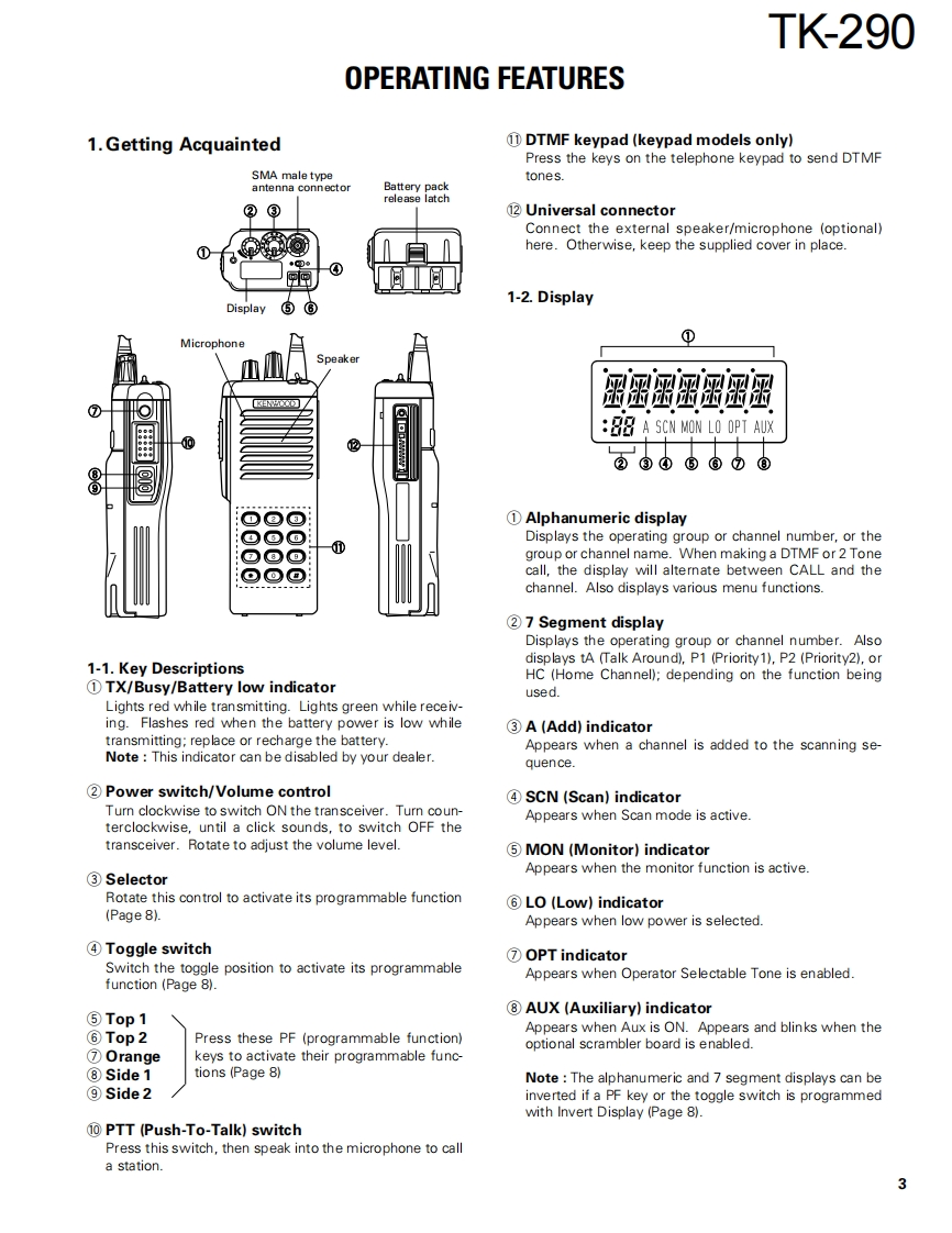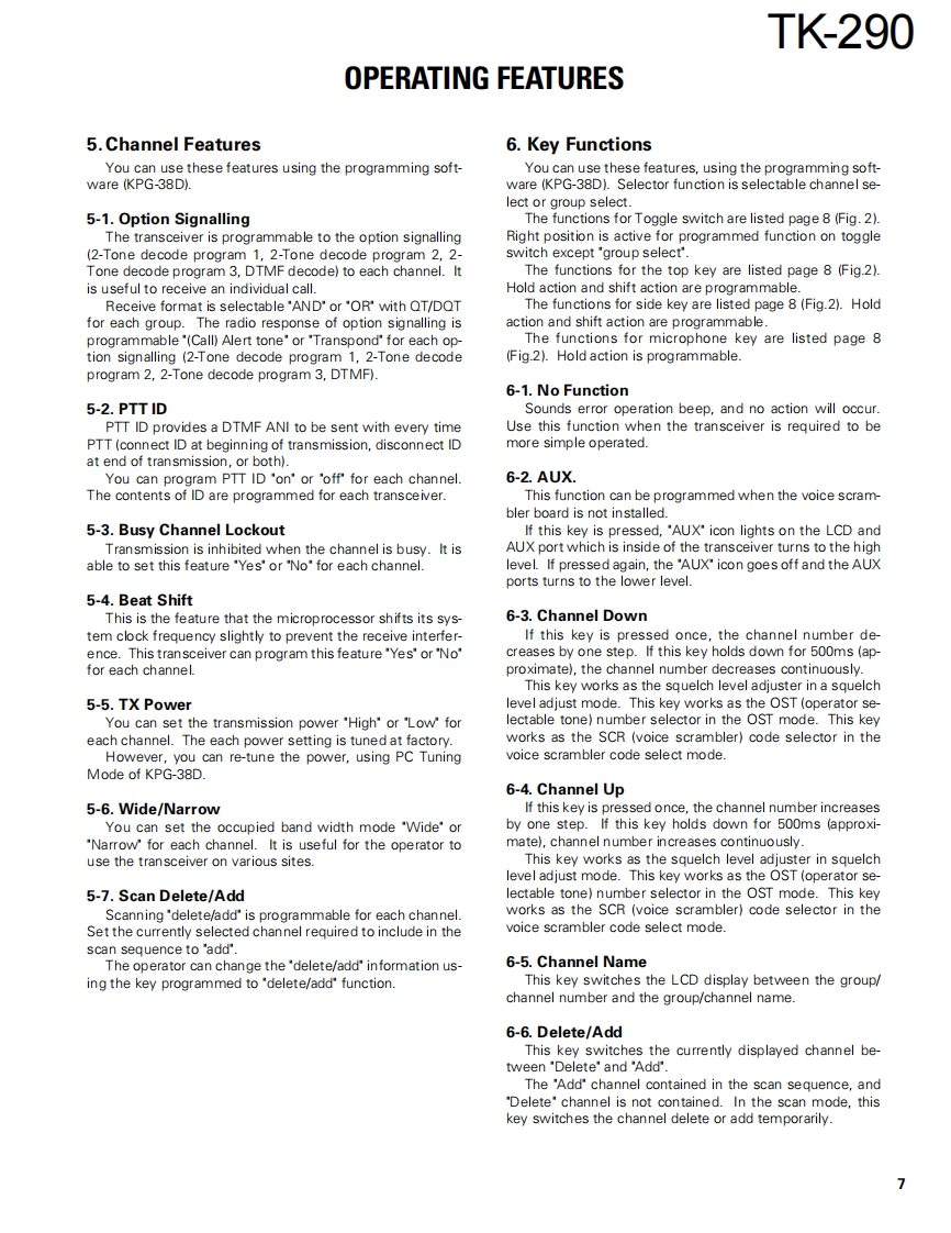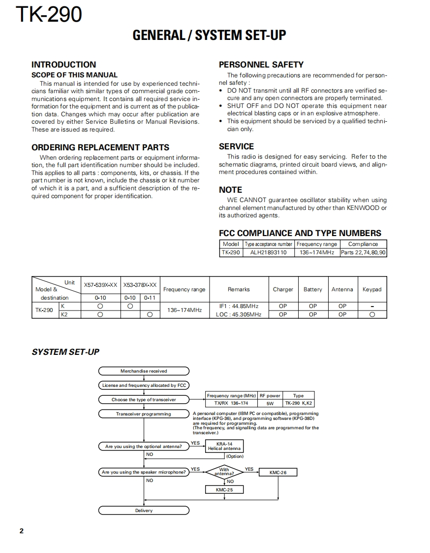 VHF FM TRANSCEIVERTK-290KENWOODSERVICE MANUAL@1998-3 PRINTED IN JAPANB51-8423-00(N)1349CONTENTSAntenna(KRA-14:Option)GENERAL2SYSTEM SET-UP..2OPERATING FEATURES...3REALIGNMENT....10CIRCUIT DESCRIPTION.16Knob assy(SEL)SEMICONDUCTOR DATA........23(K29-5282-04)DESCRIPTION OF COMPONENTS26PARTS UST..28Knob assy(VOL)EXPLODED VIEW34(K29-5283-04)PACKING35Panel assyDISASSEMBLY FOR REPAIR(A62-0537-33)36KENWOOOADJUSTMENT37LEVEL DIAGRAM.48Knob assyPC BOARD VIEWS(Side key)(K29-5216-24)CONTROL UNIT (X53-3780-XX).49TX-RX UNIT(X57-5390-10)53SCHEMATIC DIAGRAM ........59BLOCK DIAGRAM67TERMINAL FUNCTION.69KNB-17A (Ni-Cd BATTERY)...............70Cabinet assy(A02-2139-43)KMC-25/26(SPEAKER MICROPHONE).......71KSC-19 (CHARGER)..........72KSC-20 (RAPID CHARGER)...72KPG-36(PROGRAMMING INTERFACE CABLE).....72KRA-14 (HELICAL ANTENNA)72SPECIFICATIONS.......73CAUTIONPhoto is TK-290 K type.When using an external power connector,Does not come with antenna.please use with maximum final module protec-Antenna is available as an option.tion of 10V