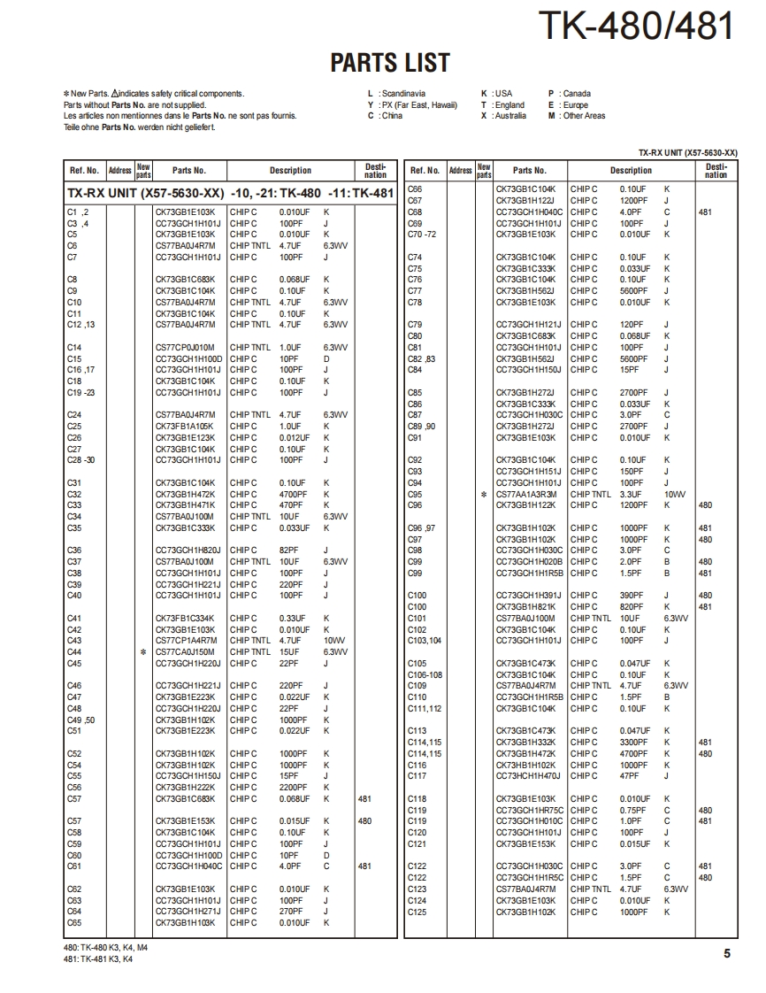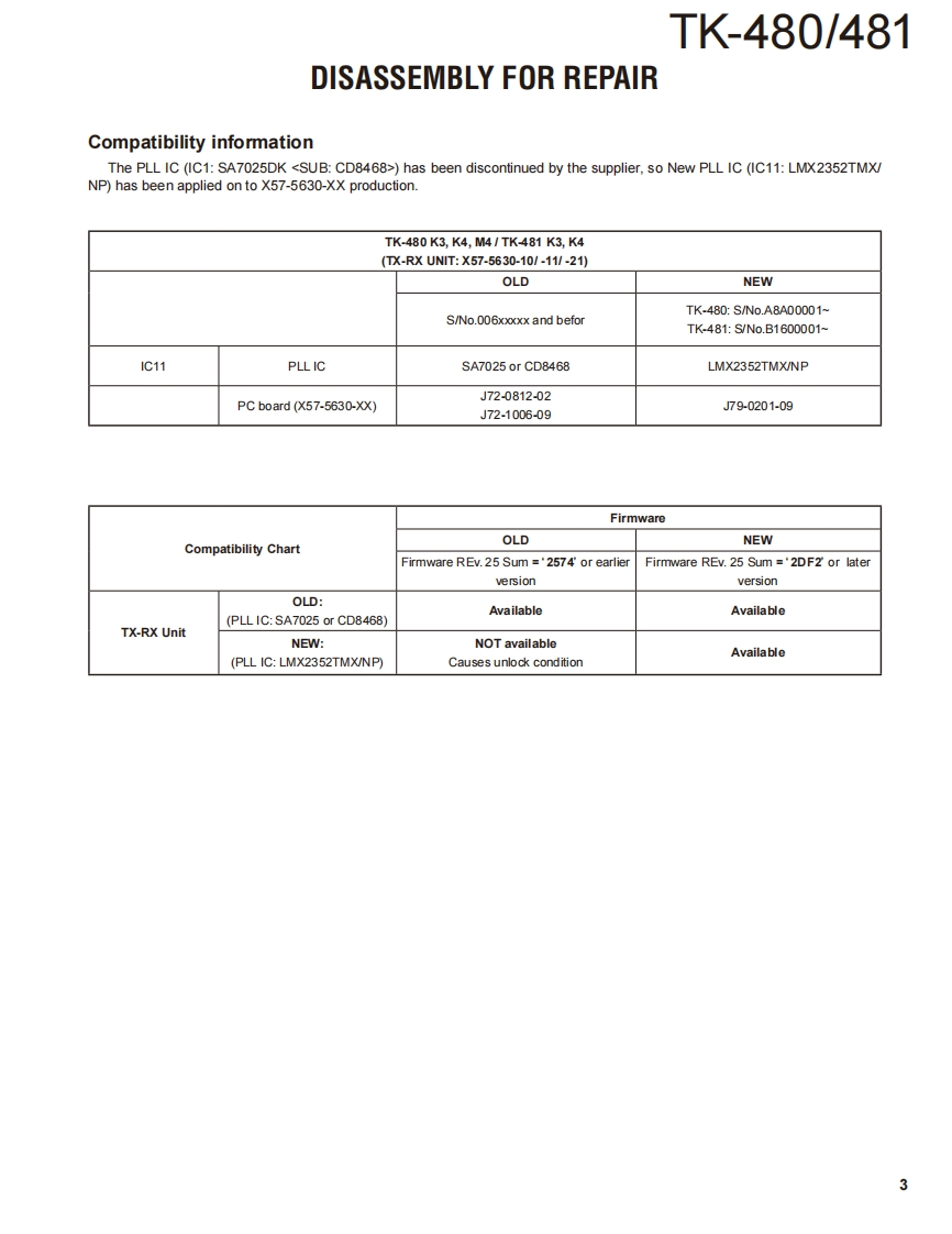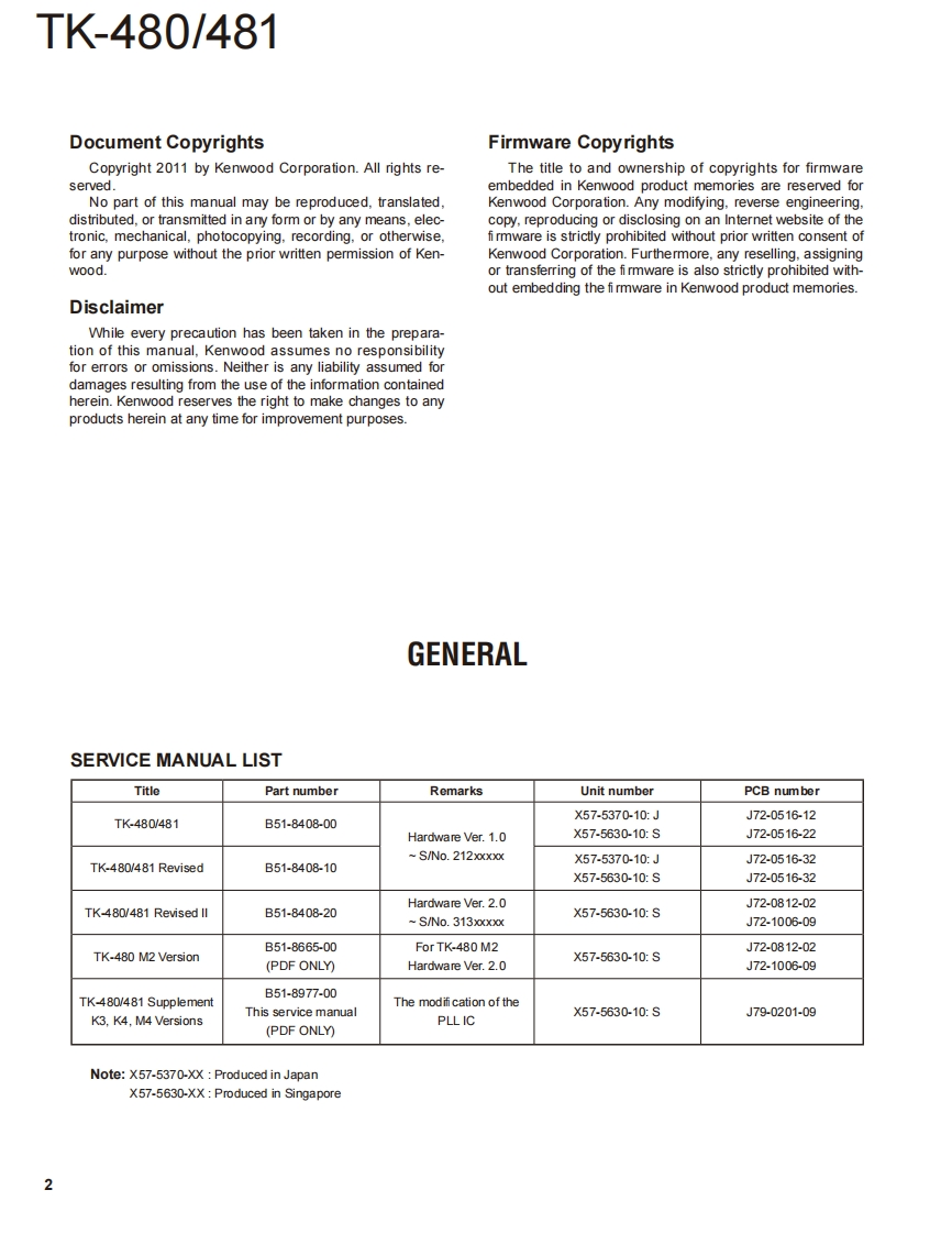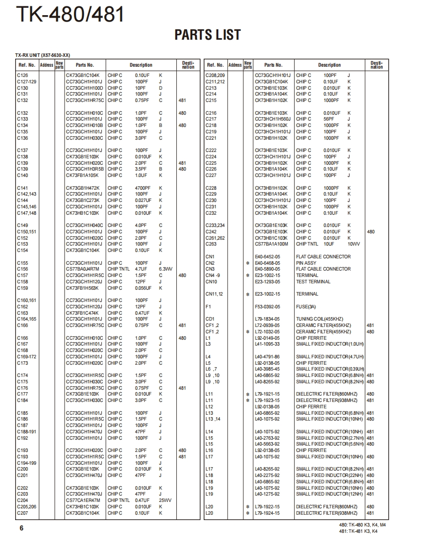 800MHz/900MHz FM TRANSCEIVERTK-480/481KENWOODKenwood CorporationSERVICE MANUALSUPPLEMENT K3,K4,M4 versions2011-5 PRINTED IN JAPANB51-8977-00)PDFThis service manual applies to products with A8A00001 (TK-480),B160001 (TK-481)orsubsequent serial numbers.Refer to the TK-480/481 series service manual for any infor-mation which has not been covered in this manual.Knob(SEL)(K29-5232-03)Knob (VOL)(K29-5231-03)Whip antenna(T90-0636-25):TK-480(T90-0640-25):TK-481Panel assyBadgeTKENWOOD】(A62-0981-04)(B43.1139-04)Knob(PTT)CONTENTS(K29-5157-03)☐5G50J8GENERAL.2DISASSEMBLY FOR REPAIR..............3SA®G@PARTS LIST.…4PackingPC BOARD(G53-0841-22):K4TX-RX UNIT(X57-5630-XX).....10SCHEMATIC DIAGRAM...................14Cabinet assy(A02-3659-23):K4CAUTIONIllustration is TK-480/481 K4 type.When using an external power connector,please use with maximum final module protec-tion of 9V.