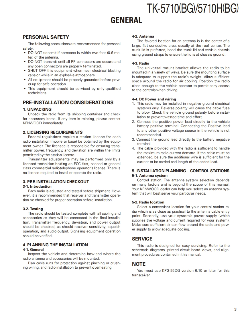 VHF P25 TRANSCEIVERTK-5710(BG)KENWOODTK-5710H(BG)Kenwood CorporationSERVICE MANUAL2010-3 PRINTED IN JAPANB51-8912-00(N)Use this service manual together with the KCH-14/15 servicemanual (B51-8728-00)or KCH-16 service manual (B51-8834-00).As for the hardware of this transceiver,version 3 is used.The programming software must use KPG-95DG.TK-5710(BG)with KCH-14Metallic cabinet (Top)KCH-14(A01-2161-32)(Front panel kit)留回▣▣▣回TK-5710H(BG)Metallic cabinet(Top】(A01-2163-21)Metallic cabinet (Bottom)(A01-2164-31)LFThis product complies with the RoHS directive for the European market.This product uses Lead Free solder.