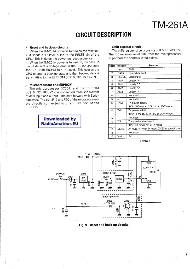 Downloaded byRadioAmateur.EU144MHz FM TRANSCEIVERKENWOODTM-261ASERVICE MANUAL@1996-3 PRINTED IN JAPAN851-8317-00(N)518Panel assyMetallic cabinet (Top)Knob (POWER)(62-0456-03)(A01-2115-03)}(K27-3163-04)VFO4RTM261KENWOODFOW MNVOLKnob (MAIN】Knob (VOL,SQL)(K29-5090-04)C《G)C,三N百(K29-5091-04)×2221CONTENTSCIRCUIT DESCRIPTION2PC BOARD VIEWSSEMICONDUCTOR DATA…9PLL(X58-4390-00)…27DESCRIPTION OF COMPONENTS....11PLL(X58-4400-00}…28PARTS LIST........44.14TX-RX UNIT (X57-4970-XX)...........29EXPLODED VIEW.20SCHEMATIC DIAGRAM......31PACKING.21BLOCK DIAGRAM35ADJUSTMENT .........22LEVEL DIAGRAM..37TERMINAL FUNCTION.。6SPECIFICATIONS.39