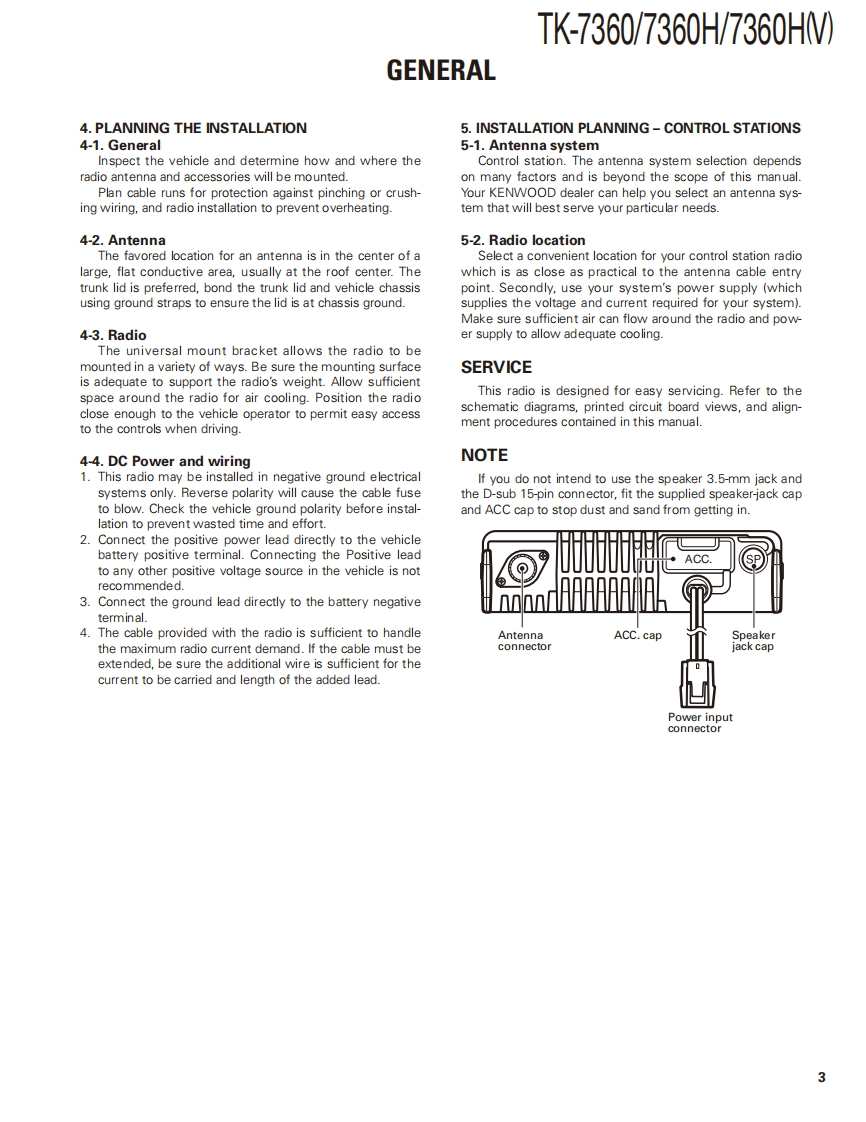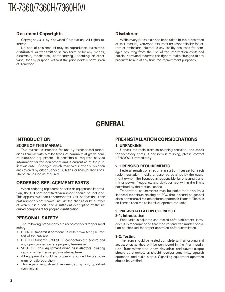 VHF FM TRANSCEIVERTK-7360/7360HKENWOODTK-7360HV)Kenwood CorporationSERVICE MANUAL2011-1 PRINTED IN JAPANB51-8952-10(N)PDFREVISEDThis service manual added the details of thepanel tuning mode to B51-8952-00.AKBC>KENWOODModular jackKey topPanel assyBadge(E58-0535-05)(K29-9479-01)(A62.1180-13)(B43-1650-04)CONTENTSGENERAL...........................2PACKING32SYSTEM SET-UP..4ADJUSTMENT...33REALIGNMENT.........4TERMINAL FUNCTION......................42INSTALLATION6PC BOARDDISASSEMBLY FOR REPAIR................11DI1 SPLAY UNIT(X54-3740-20)....44CIRCUIT DESCRIPTION.......13TX-RX UNIT (X57-8020-XX).................46SEMICONDUCTOR DATA........................18SCHEMATIC DIAGRAM.........................50COMPONENTS DESCRIPTION...............19BLOCK DIAGRAM5.6PARTS LIST..2LEVEL DIAGRAM.............58EXPLODED VIEW.......31SPECIFICATIONS..59LFThis product complies with the RoHS directive for the European market.This product uses Lead Free solder.